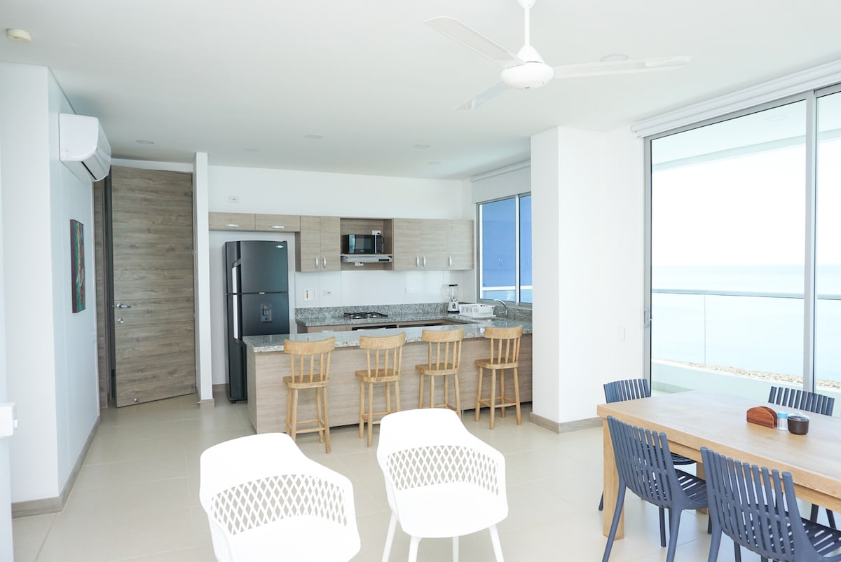 Benvingut a aquest encantador apartament situat estratègicament a primera línia de mar. T'ofereix una preciosa vista de les onades i l'horitzó, situat a la millor zona de Coveñas. Està dissenyat per oferir-te comoditat i relaxació, amb un estil modern i amb tocs de caliu platja. Des del balcó privat, podràs gaudir de les postes de sol i del so relaxant de l'oceà. Prepara't per a una experiència inoblidable a la vora del mar!