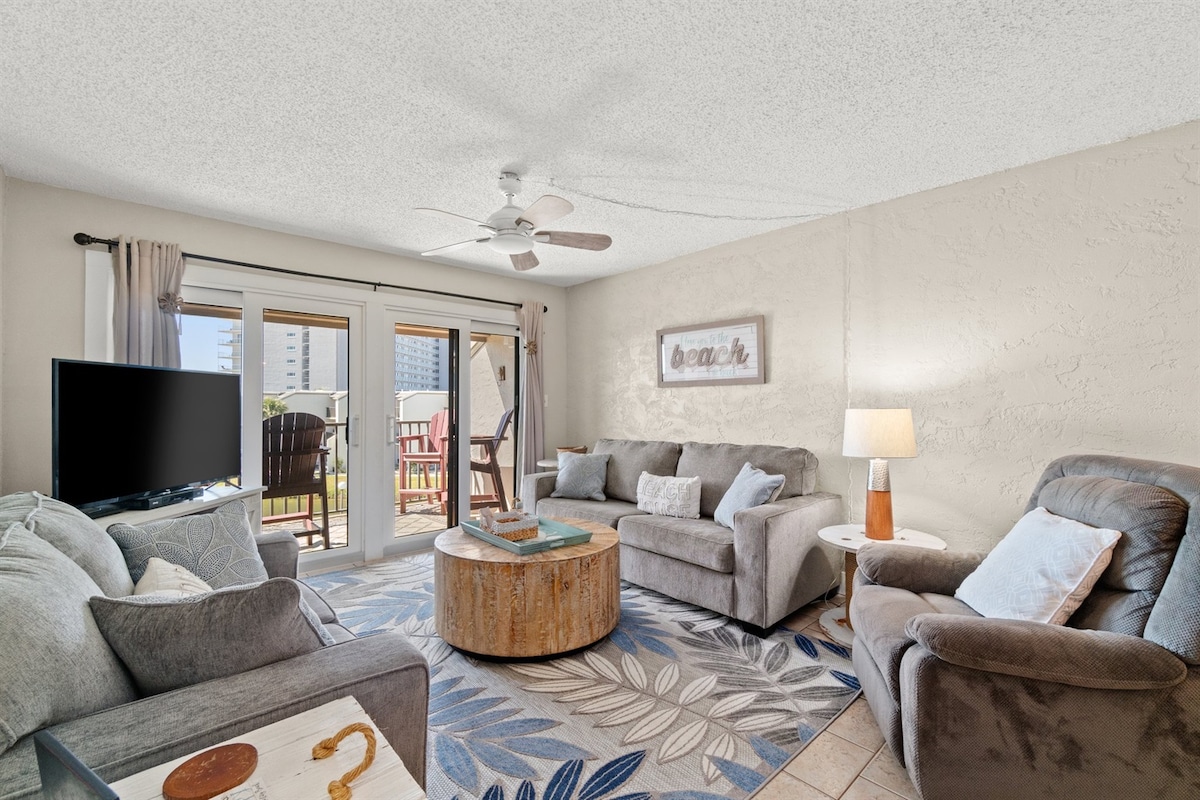 ** Els lloguers de març a octubre inclouen servei gratuït de cadira de platja ** Llença les teves preocupacions mentre camines per aquest paradís acollidor i acollidor a la platja. "Lazy Days" és un apartament d'un dormitori i un bany amb capacitat per a 5 persones, situat a només uns passos de les sorres blanques de sucre i les aigües esmeralda de Panama City Beach. Després de passar el dia a la nostra platja privada i relaxar-te al costat de la nostra piscina comunitària, gaudeix d'un petit passeig fins a un dels molts restaurants locals i atraccions familiars situades a pocs minuts de l'apartament.