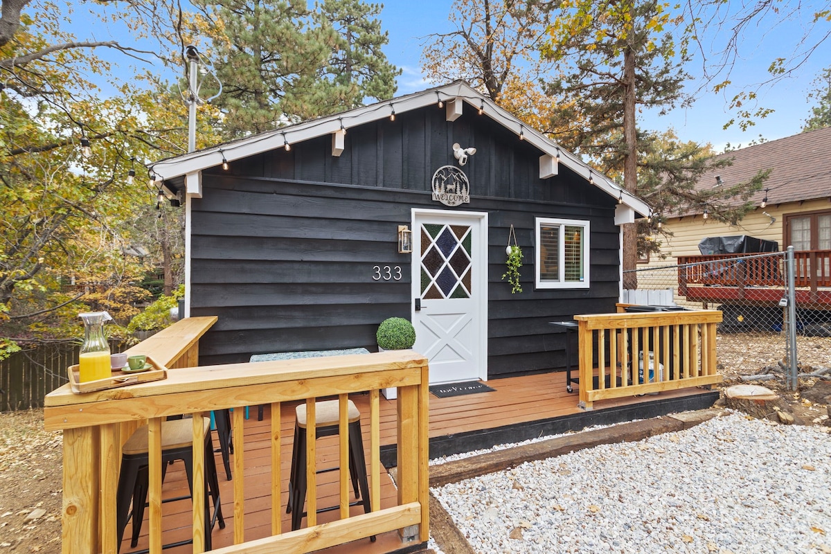Relax with family & friends in our cozy chalet style cabin with all the modern amenities, tucked under tall trees in a serene neighborhood. Spend your evenings by the fire with smores, BBQ or enjoying games in “Pancho’s pub”. Our spacious, private backyard is perfect for relaxing or play. *Click <3 / save on upper rt corner of listing to easily find us* Only 1 block from the forest for hiking and sledding. Minutes to Big Bear Lake, Snow Play, Snow Resorts, Eateries , Shopping and The Village.