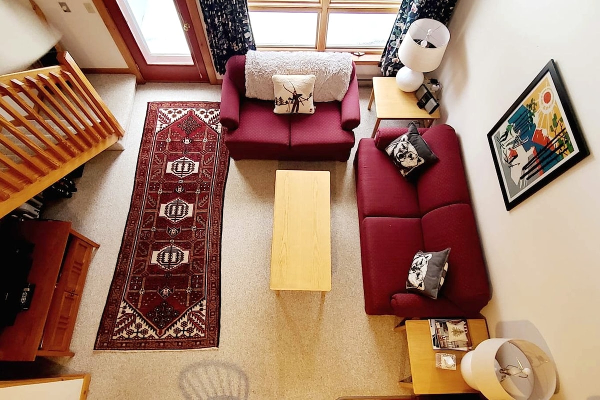 Acollidora escapada al condomini que es troba JUST al costat del camí d'accés al condomini (Snubber). Aquesta unitat de dos nivells té 2 dormitoris, 2 banys complets i un loft per dormir. Distribució per dormir: 1) llit doble gran; 2) lliteres amb llit plegable; Loft) llit «queen». Llar de gas, solàrium amb vistes, wifi, televisor amb internet i accés a la banyera d'hidromassatge de cap de setmana 21/12-4/13 (de migdia a 21:00). Convenientment situat just sota l'ascensor de mitja estació i a prop de la parada del servei de transport. Activitats durant tot l'any: esquí, X-Country, raquetes de neu, ciclisme de greix, ciclisme de muntanya, golf, senderisme.