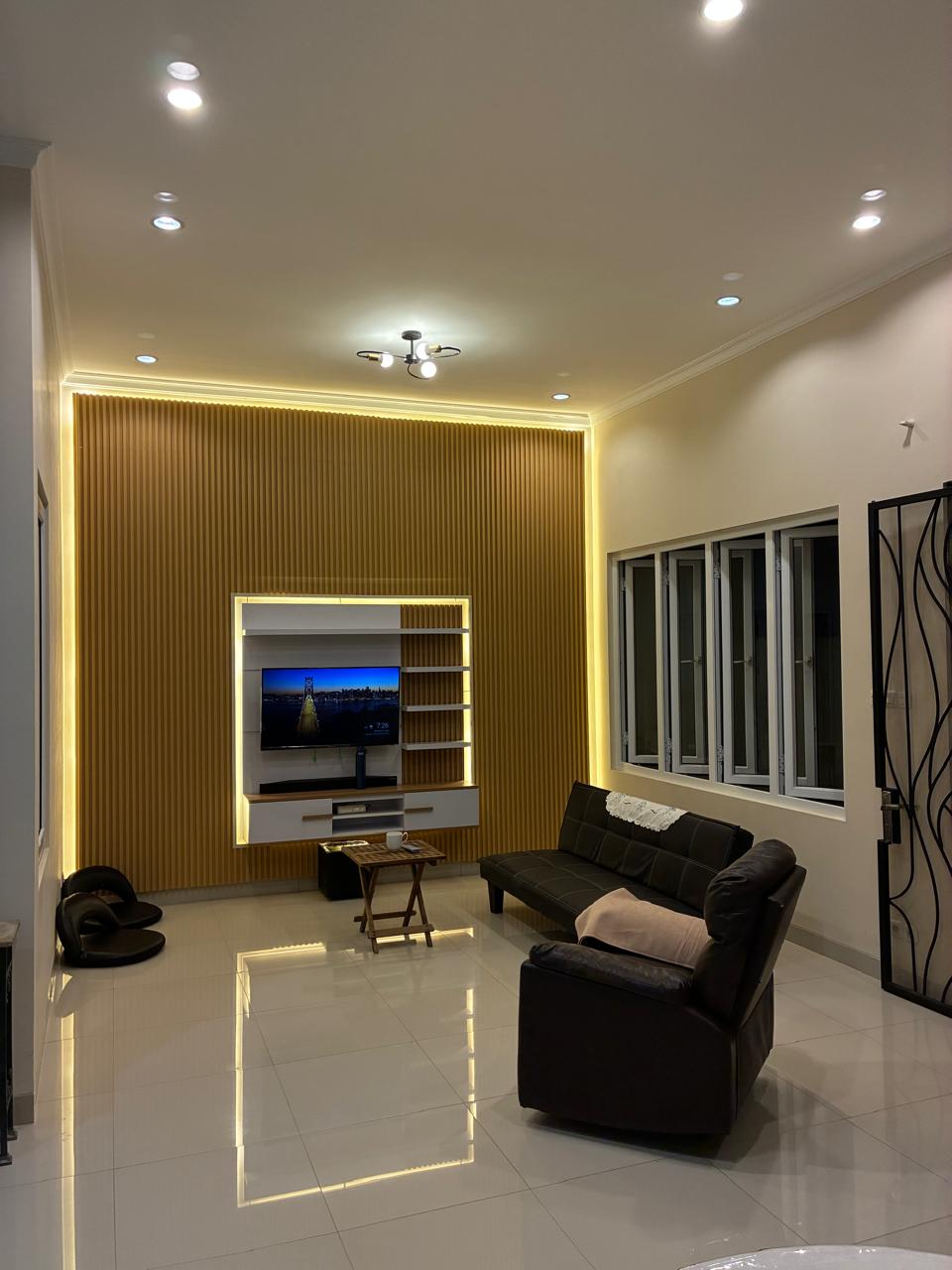 Relaxa't amb tota la família en aquest allotjament tranquil amb una vil·la de disseny de luxe de 5 dormitoris amb piscina privada Instal·lacions: - 2 televisors grans de 75" - Piscina privada - Taula de menjador de marbre (Marmer) - Dormitori principal molt espaiós amb 2 llits «king size» addicionals i un sofà gran. - Wifi - Netflix - Aigua calenta a tots els banys -Karaoke - Barbacoa - Utensilis de cuina (gas, aigua, cuina d'arròs, Indomie, cafè i te) - Nevera - Microones - Aire condicionat a totes les habitacions. - Articles de tocador i tovallola -Cadira i bressol per a nadons* - Sabó/xampú -2 Tub de bany 🛀