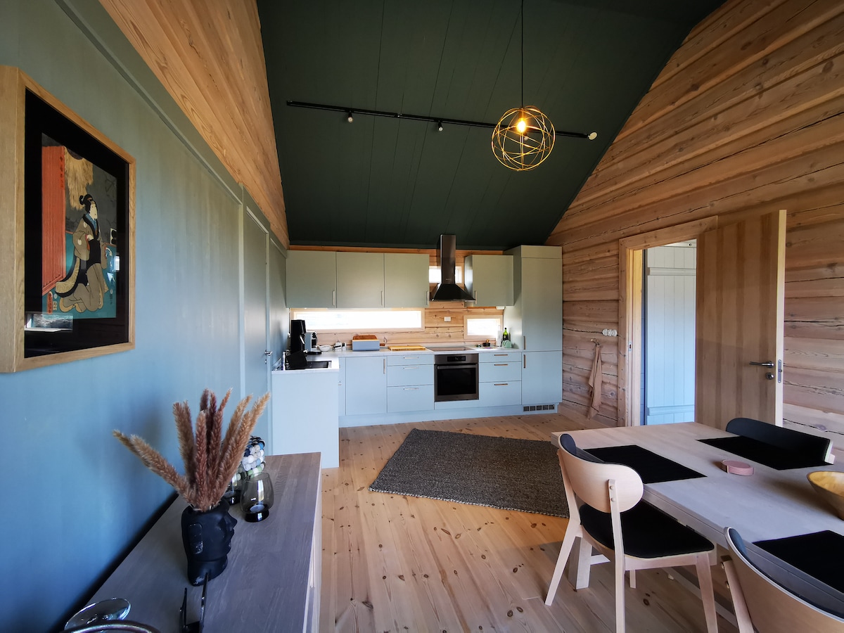 Casa rural lluminosa i moderna a prop del mar. Finestres panoràmiques grans amb vistes fantàstiques. Cuina amb rentaplats. Inclou un petit vaixell de pesca/barca de rem. Pots pescar o nedar just a sota de la caseta. Banyera d'hidromassatge de llenya (l'ús s'ha d'acordar, 350 NOK per 1 ús,després 200 per calefacció) La safata de SUP es lloga 200 NOK per estada i SUP La caseta està situada en un promontori a l'extrem més remot de Surnadalsfjorden. Aparcament just al costat de la caseta. A 20 minuts del centre alpí de Sæterlia i de les pistes d'esquí de fons.