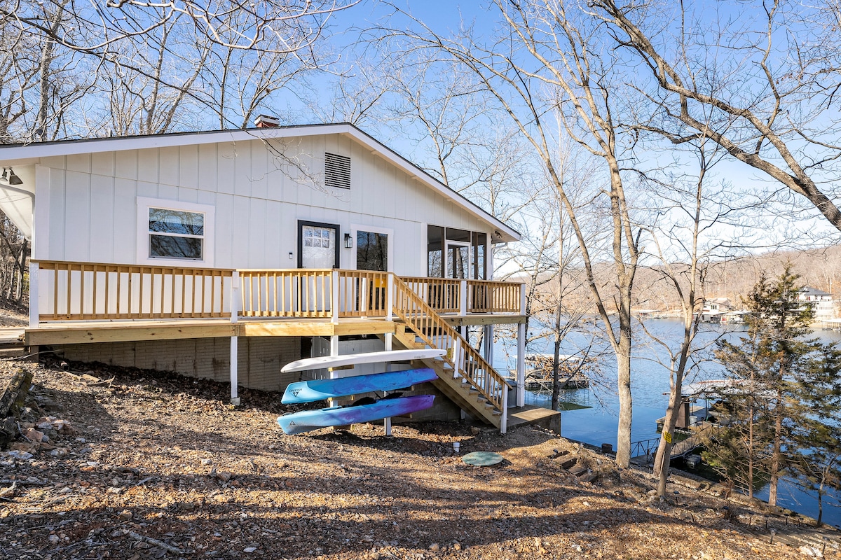 Schaefer Adventures is a 3-bedroom, 2-bathroom home on a level lot conveniently located at the 34.5mm, off 5-53, near Pirate's Point and Captain Ron's. This newer home is perfect for big families and reunions, sleeping 8, with a large kitchen, island, and open concept living and dining. Major interior remodel this Spring 2026 with a large walk-in shower, new flooring in the main living area, plus a new dining room table and chairs (March 2026). Bring your boat! There is a dock and 2 boat slips.