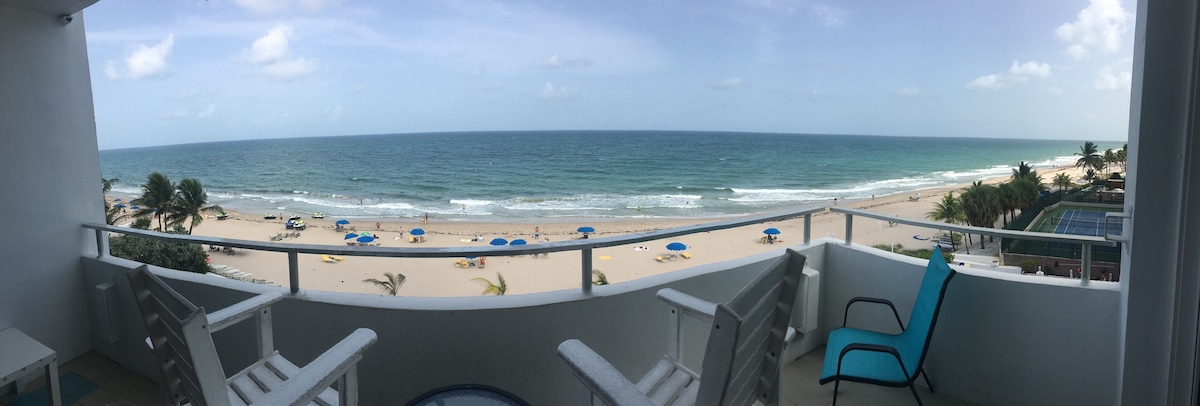 BEACH Resort -No resort fees! Located at Ocean Manor Resort! Attached to the hotel is: Beach-Large pool-Tiki Bar on the beach-Happy hour-Sports Bar-Music-Food -Italian Restaurant-Jet ski rentals-Yoga-Spa-Coffee Bar. If this is not available-please inquire-we have 4 units in the building! Located near Commercial Blvd where there is plenty of entertainment, bars, restaurants. Free shuttles to local mall, restaurants, bars and more! Close to water taxi, Commercial - A block from shopping center