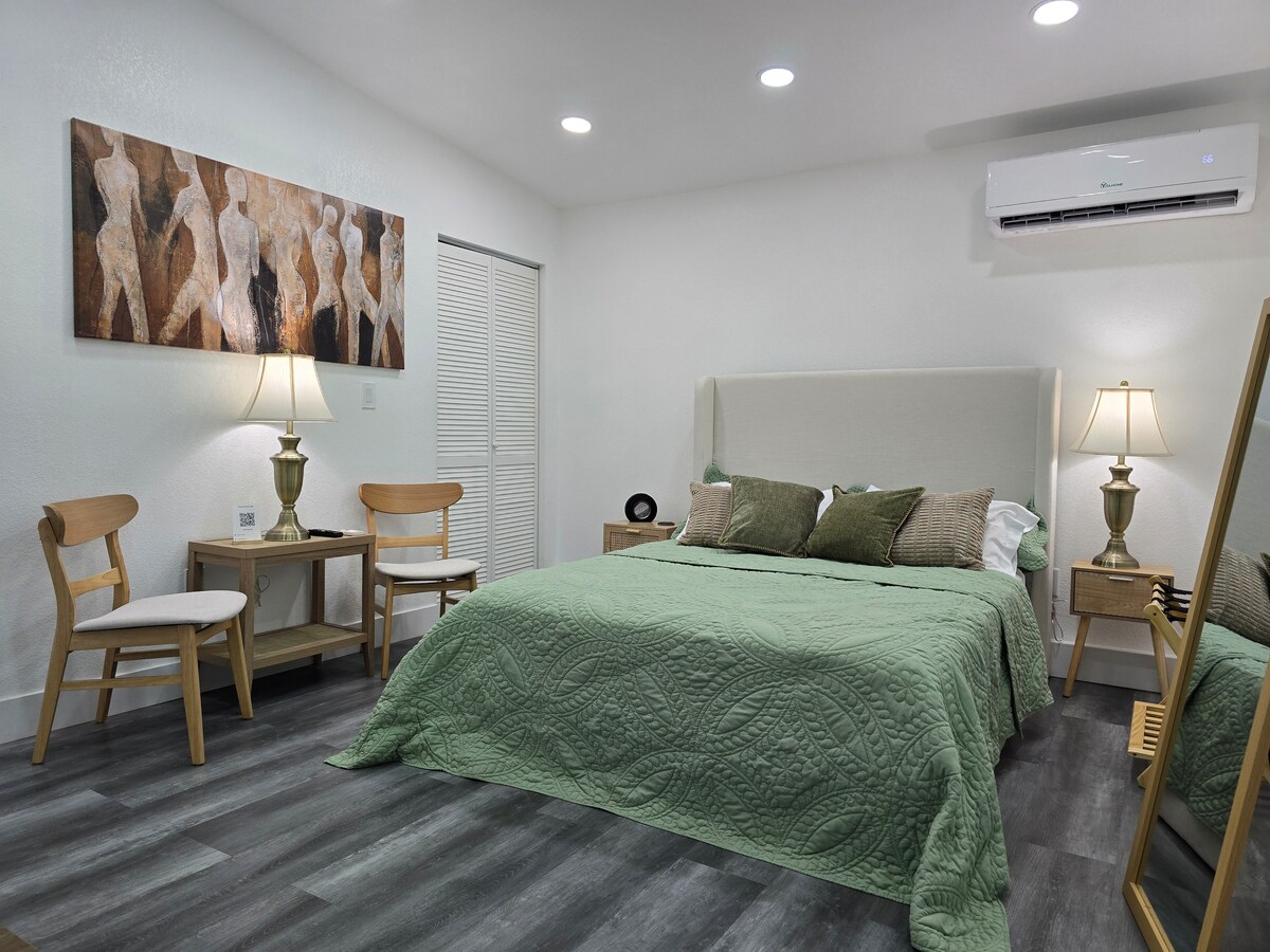 Aquesta adorable propietat ofereix una estada fantàstica i fabulosa per als hostes. L'habitació té un llit queen molt còmode i elegant. Disposa d'una cuina equipada i un bany privat per a una dutxa refrescant. Mantingues-te connectat amb wifi i televisor amb Netflix ,You Tube ,gaudeix d'aquests serveis (sol·licita una llista). Tant si estàs explorant la vibrant ciutat com si estàs provant sort als casinos, el nostre estudi és la base perfecta per a la teva aventura a Las Vegas.