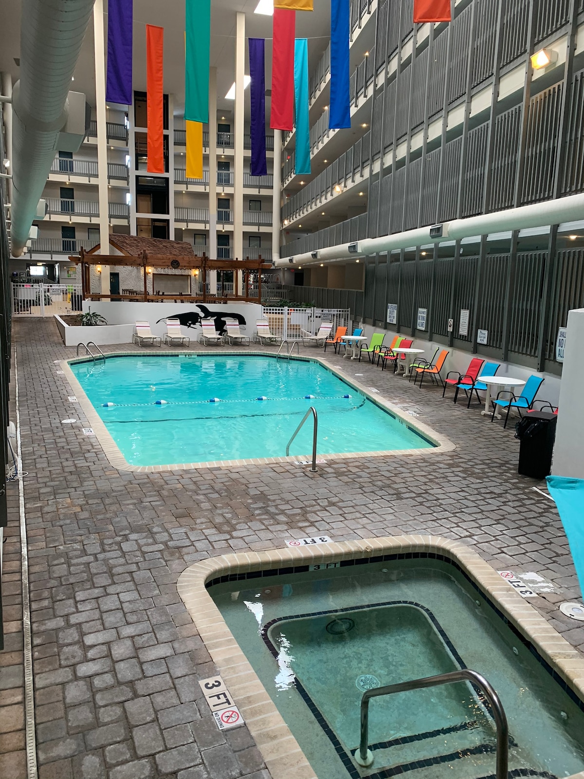 JULY 29-31 JUST OPEN! April 19-21, 26-30! May 3-8, 25-29! Will go quickly- book fast! Book 4 cheer/dance comps/pageants/ball tourneys! Playing fields/Conv. Ctr close by! NO cleaning fees/NO deposit! FREE parking/FREE in room breakfast/wifi/Roku TV/Indoor/outdoor pools/jacuzzis/lazy rivers! Beach towels provided and chairs for beach in room. Pack and play in the room. NO SMOKING vaping room/balcony! No refunds for hotel issues! Booking is agreeing to cancellation policy.