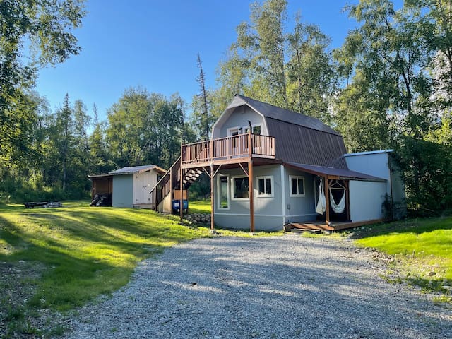 3.8 milles al bell centre de Talkeetna! Cabana de 20’x20' amb llit queen, loft a dalt amb dos llits individuals i llit futon ple. Zona d'estar, cuina petita i bany amb dutxa. Televisor de pantalla plana. Terrassa gran, barbacoa de gas i foguera! Tranquil·la però a prop de veure vols, tirolina i recorreguts en vaixell fluvial/pesca. Al final de la carretera de la Flying Squirrel Bakery. Un petit recorregut a través de l'Spur Road fins a Talkeetna Lakes Park amb senders d'estiu i hivern. Rutes en bicicleta directes al centre de Talkeetna!