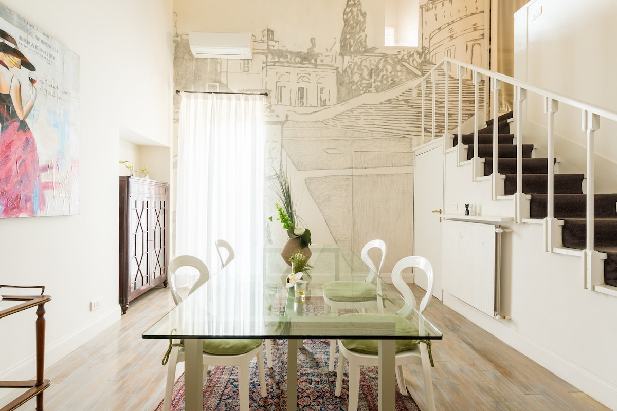 Pis acollidor per a parelles, grups o famílies. Situat en una posició estratègica, a només uns passos de l'estació de tren (100 metres), del centre de la ciutat i de tots els serveis. Roma o Viterbo són fàcilment accessibles en tren, igual que l'aeroport de Fiumicino. És la solució perfecta per a aquells que volen allunyar-se del caos de Roma, però que trobin que és còmode de visitar. Hi ha taxis i autobusos disponibles des de l'estació per moure's per la ciutat i les zones properes. 2n pis, sense ascensor.