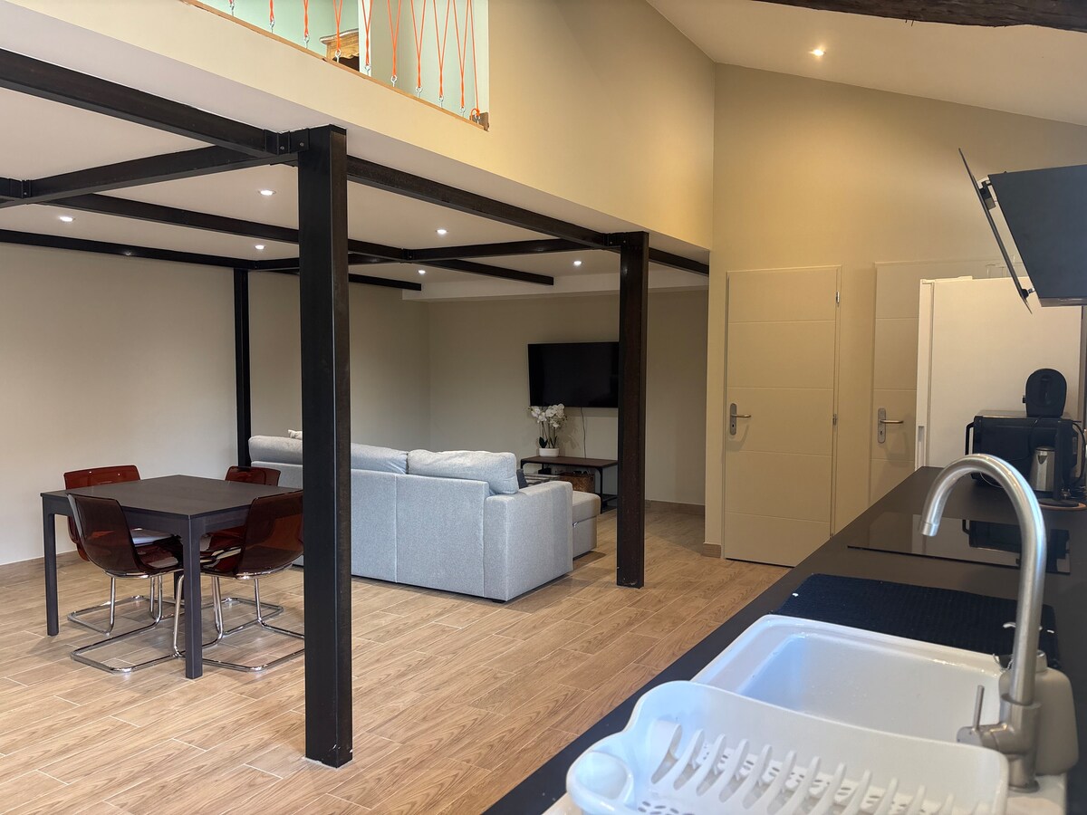 En Drôme provençale, à côté de Grignan, entre vignes et lavande, notre gîte est le seul de la propriété. Il se trouve à l'étage, pour quatre personnes adultes, attenant aux mas des propriétaires. Pièce à vivre de 48 m2, avec cuisine ouverte toute équipée, coin détente avec téléviseur 127 cms, climatisation. Suite parentale de 35 m2 avec douche italienne, double vasques, wc indépendant, climatisation. Mezzanine de 30 m2. Les deux lits font 160X200. Terrasse privative avec barbecue weber.
