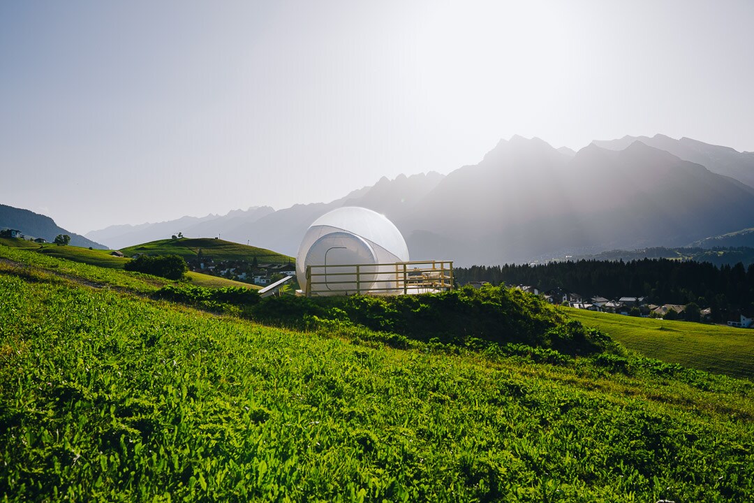 Al bell mig de la Surselva, la teva tenda de campanya en forma de bombolla es troba a la granja ecològica de Dalila i Emanuel Giger, un lloc ple de silenci, naturalesa i caliu. Durant més de 20 anys, la família ha gestionat la granja amb passió. La tenda de campanya Bubble està situada en un càmping idíl·lic amb altres parcel·les per a campistes i tendes de campanya. Tant si fas senderisme, ciclisme o simplement vols relaxar-te, aquí trobaràs el teu refugi per a un descans real a les muntanyes dels Grisons, lluny de l'enrenou.