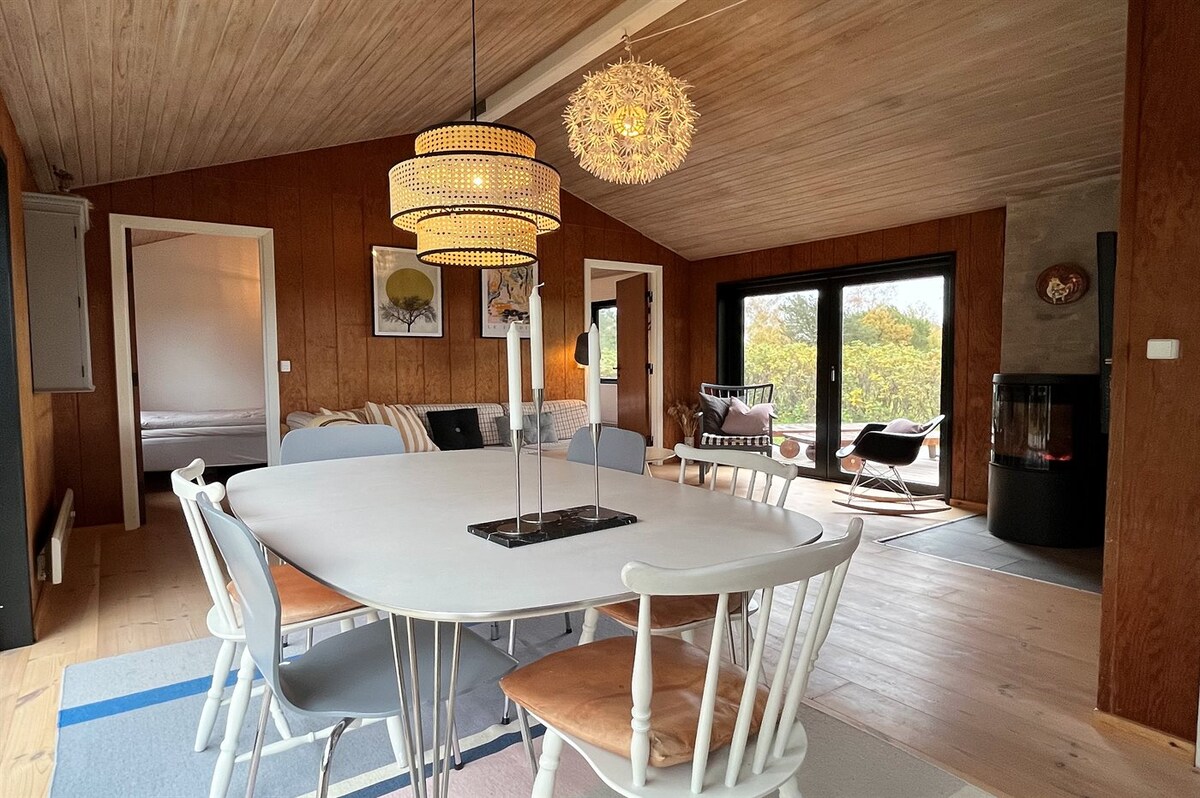 La casa està situada en un entornat de natura en un carrer tancat i, per tant, hi ha pau i tranquil·litat. Durant els mesos d'hivern, es pot veure el mar, que es troba a 400 m de la casa. Hi ha bons camins naturals al llarg de la costa i al bosc. La casa està situada al costat del parc natural Mols Bjerge i a prop de la ciutat de Rønde, amb bones botigues i restaurants. Hi ha uns 25 km fins a Aarhus i uns 20 km fins a Ebeltoft. La casa té 3 dormitoris. Hi ha cuina i sala d'estar amb estufa de llenya. Hi ha dues terrasses amb sol i bones condicions de vent. Hi ha dues terrasses cobertes.