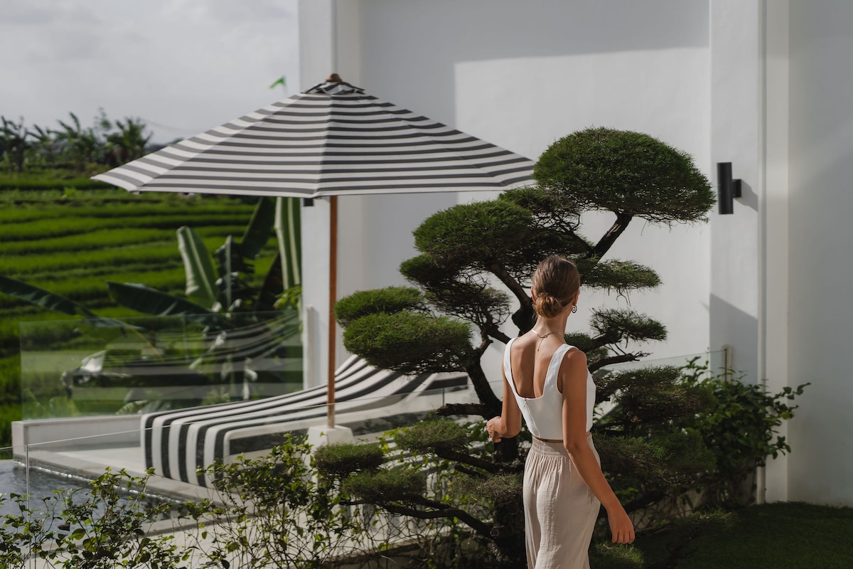 Descobreix "The Frame", una vil·la exquisida a Bali, on el luxe es troba amb la tranquil·litat de la natura. Gaudeix d'unes vistes impressionants dels exuberants camps d'arròs, amb un disseny modern i una comoditat inigualable. Cada detall està dissenyat per garantir una estada extraordinària, per la qual cosa és perfecta per a aquells que busquen serenitat. "The Frame" està en harmonia amb la natura, convidant-te a gaudir dels sons serens del riu i de les espectaculars postes de sol. Reserva el paradís per gaudir d'una experiència de cinc estrelles en aquest refugi privat de luxe.