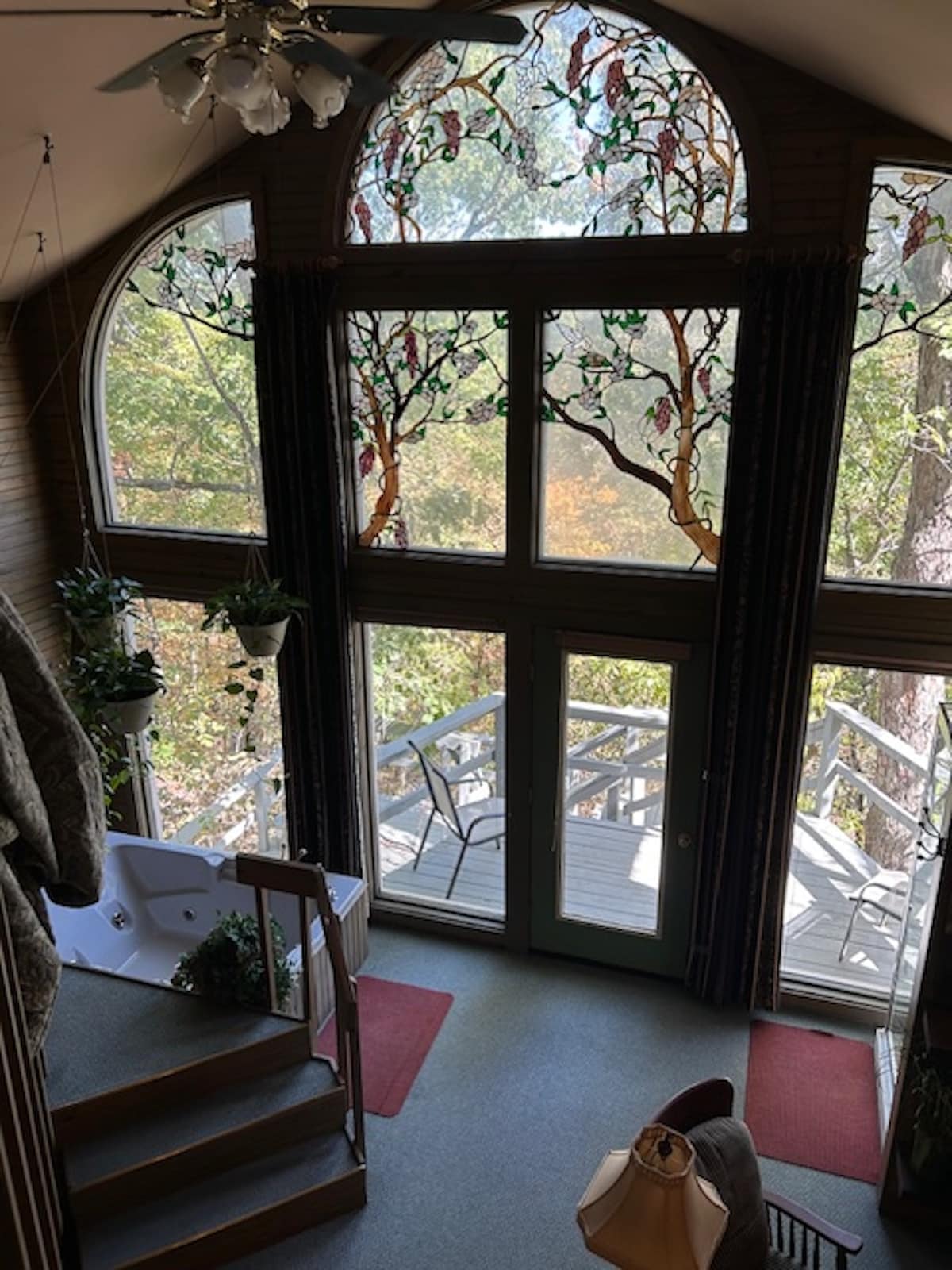 Cabana a la muntanya amb façana de vidre a Eureka Springs