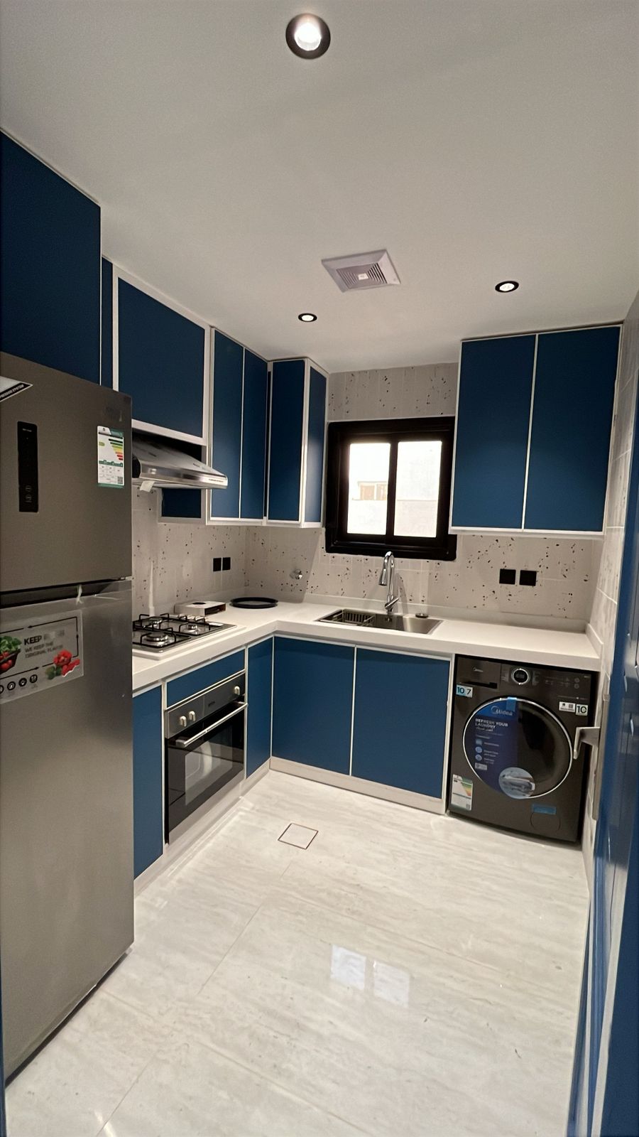 Aquest distintiu apartament està situat en un dels barris de luxe de Tabuk, que es caracteritza per una ubicació completa, tranquil·la i estratègica, ja que es troba a uns 15 minuts en cotxe de l'aeroport Prince Sultan Bin Abdulaziz, a quatre quilòmetres del Park Mall (el centre comercial més gran de la regió) i molt a prop de serveis (restaurants, supermercats, etc.). A 178 km de l'aeroport de Neom Bay. Comoditat, tranquil·litat i luxe en un sol lloc Entrada intel·ligent interna externa Des del primer minut et sents com a casa Integrat i distintiu Cuina integrada Estanteria per a cafè Planta natural d'interior Rentadora amb assecadora tèrmica