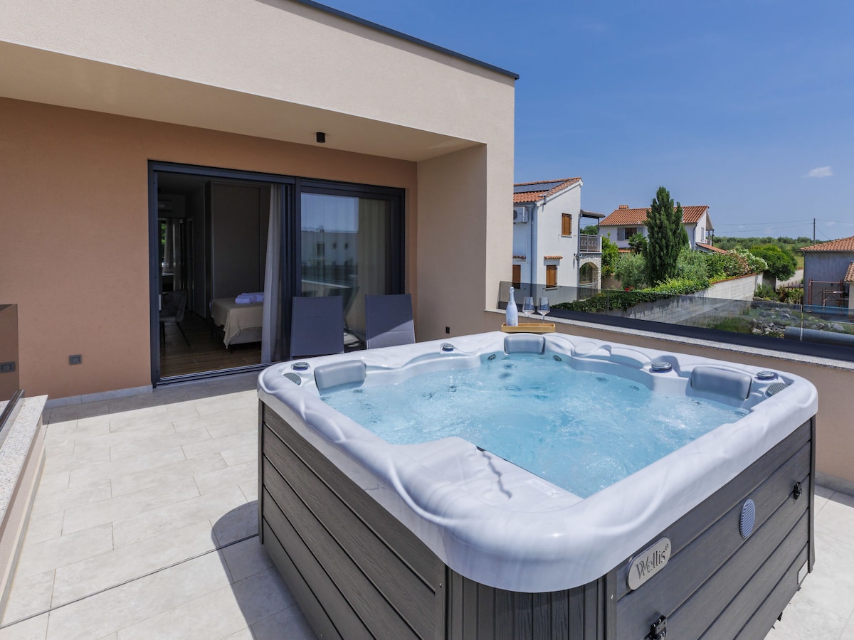 A prop de Poreč, trobaràs el SOL de la vil·la independent, amb piscina i vistes al mar. Completat el 2025, Villa SUN, moblada amb mobles de disseny italià, es divideix en dues plantes. Un dels aspectes més destacats és la cuina de barbacoa que hi ha al costat de la piscina. La sala d'estar-menjador et convida a passar unes nits agradables. Als dormitoris acollidors trobaràs una bona nit de somni i et despertaràs amb vistes al mar. Un gran jardí tancat, perquè els nens i els gossos puguin jugar. Estació de càrrega elèctrica per a cotxes al pati.