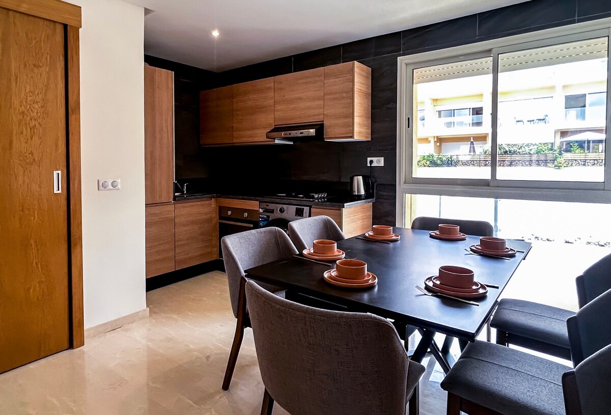 🌴 Pis amb vistes al mar a quatre passes de la platja Pis lluminós i modern amb vistes impressionants a l'oceà i al camp de golf a la badia de Taghazout. Ideal per a famílies, parelles o surfistes! Gaudeix de piscines, d'una residència segura, d'una sala d'estar còmoda i d'una cuina totalment equipada. A poca distància a peu de cafeteries, de la platja i d'atraccions de la zona. Reserva ara la teva escapada de somni vora el mar! 🌊☀️