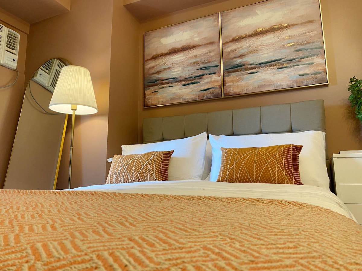 Aquest lloc elegant i únic s'inspira en l'interior asiàtic boig i ric. Situat al cor de Bonifacio Global City, aquest nou espai ofereix una experiència perfecta al principal districte de negocis d'estil de vida del país. - Accés independent sense claus amb pany intel·ligent - Televisor intel·ligent de 50 polzades 4K amb Max/HBO - Aire condicionat i llums intel·ligents - Wifi molt ràpida de 250 Mbps. - lloc de treball tranquil Accés dels hostes Piscina (només de dimarts a divendres) No hi ha gimnàs, però hi ha un gimnàs al centre comercial Aparcament Pistes de bàsquet i bàdminton (s'han de reservar amb una setmana d'antelació)