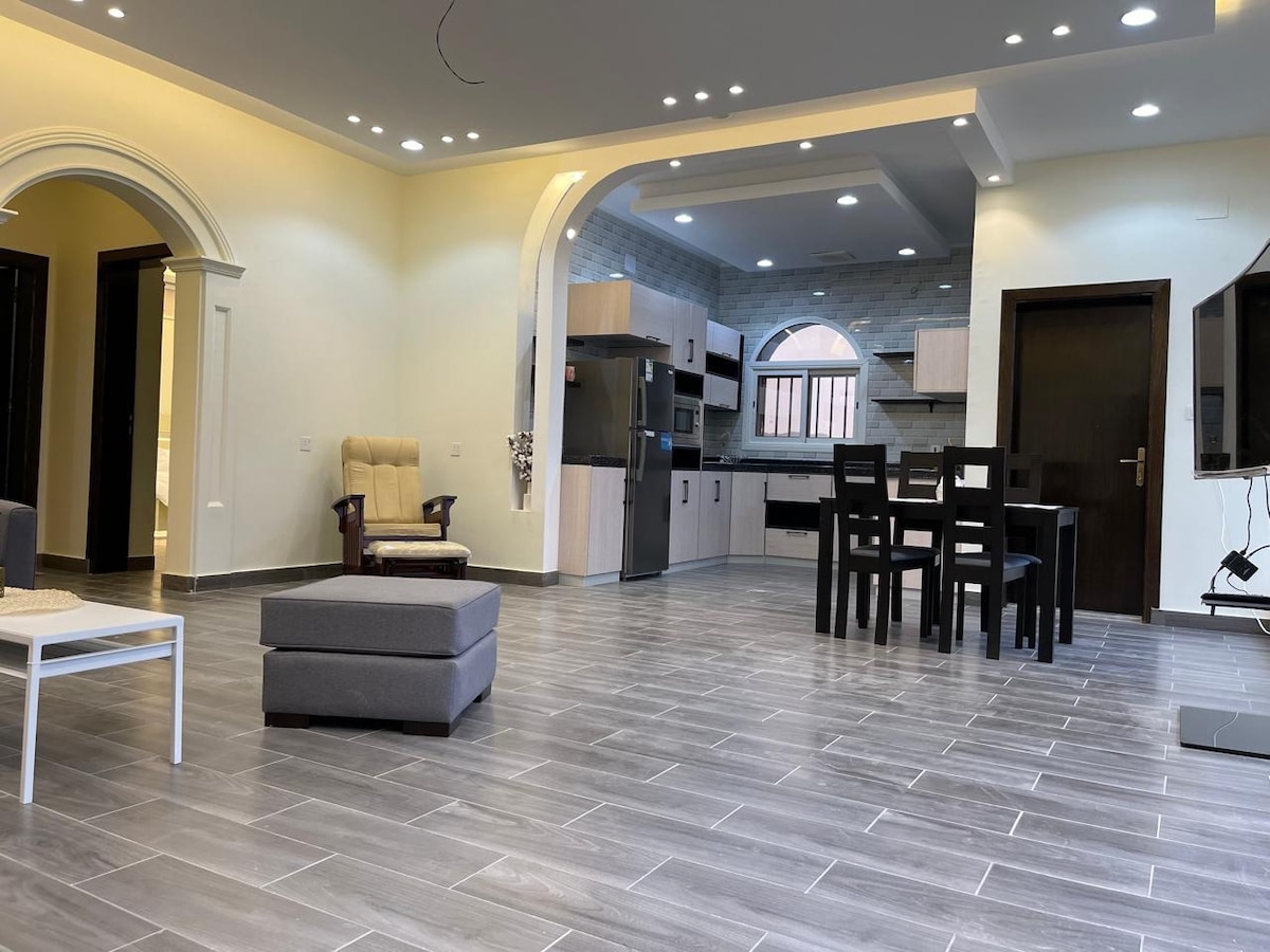 Un nou apartament espaiós i modern en una ubicació estratègica al barri d'Al-Wissam a Taif, situat entre els millors llocs per caminar a Taif, Al-Shifa i Al-Hada, a prop de la Meca, a uns 50 minuts, el barribarri és tranquil, a prop del centre de la ciutat i lluny de zones concorregudes, tots els serveis estan disponibles en abundància, restaurants, mercat, hi ha wifi gratuït i mobiliari integrat, té múltiples instal·lacions Dos dormitoris, un amb un llit doble i l'altre amb dos llits individuals, una sala d'estar amb un sofà adequat per relaxar-se i dormir, un aire condicionat excel·lent, una bugaderia equipada amb una rentadora, una assecadora, eines de planxa, un bany, una petita cuina i aparcament privat gratuït.
