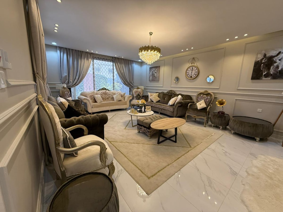 Un apartament espaiós i tranquil amb mobles elegants i còmodes que consta d'un saló, dos dormitoris, una cuina i un bany i un segon pis (calaix), tots els serveis estan a 120 metres de la zona central del districte d'Al-Wasit Oferim a aquest lloc els serveis necessaris, eines de bany d'un sol ús, cuina i eines bàsiques de lliurament, Internet, Netflix, estalvis de pantalla intel·ligents, kaweya, bugaderia i bugaderia. - A 18 minuts de l'aeroport de Taif - Arribada (autònoma) Serveis addicionals per a la teva comoditat: - Un treballador de servei i un netejador a la propietat. - Restaurants que ofereixen lliurament gratuït.