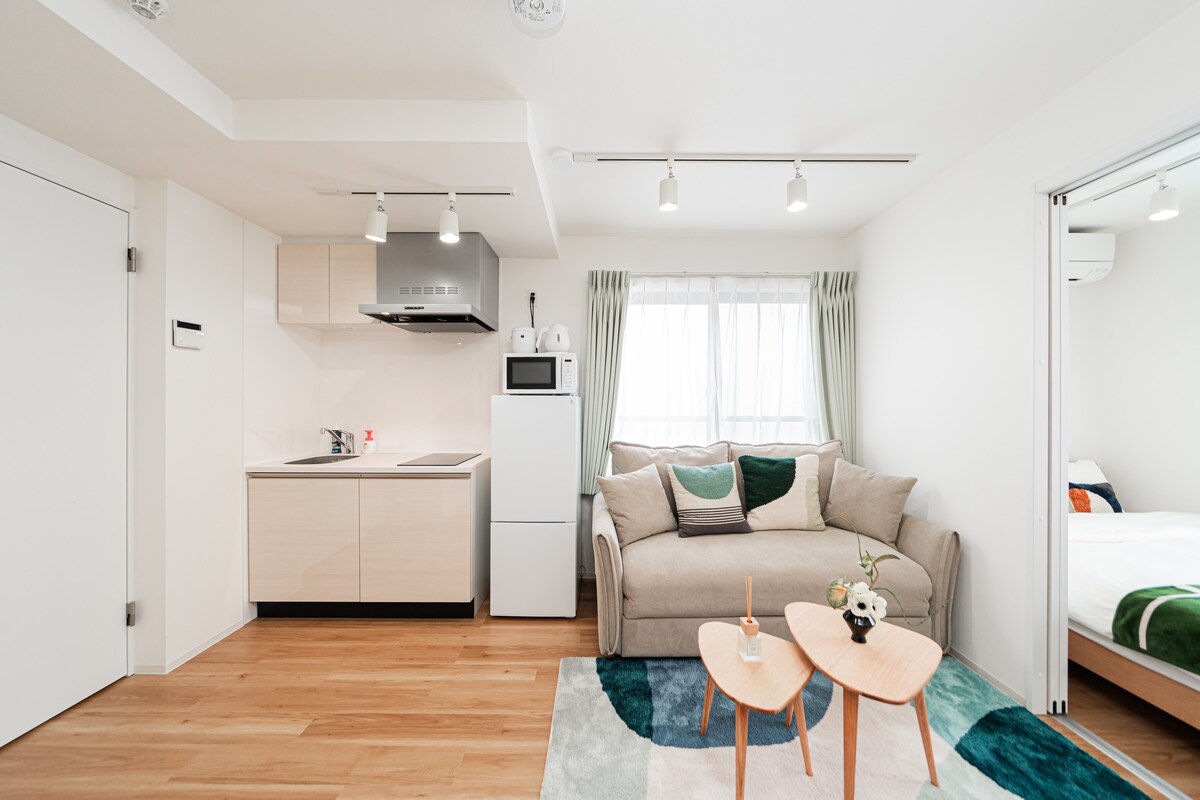 Pau i tranquil·litat · Estudi Japandi de nova construcció | A prop de JR i del metro | Rentadora i assecadora | Ascensor | Emmagatzematge d'equipatge