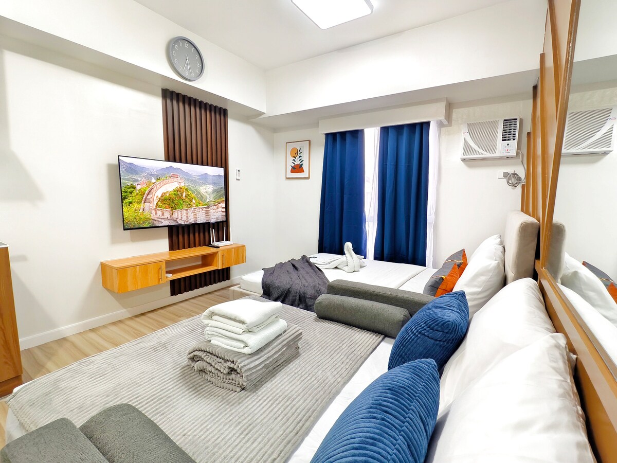 Gaudeix d'un estil de vida de gamma alta en aquest estudi de luxe al 22è pis de Park Avenue 38, IT Park, que ofereix elegants vistes a la ciutat i a la badia. Ideal per a quatre persones. Gaudeix del teu projector de cinema privat, un sofà llit suau, plantes d'interior i aire condicionat que mata els gèrmens. Disposa de dutxa amb aigua calenta i freda, cuina completa i servei de neteja diari. Hi ha un 7-Eleven a l'entrada, envoltat de les millors cafeteries i restaurants de luxe oberts les 24 hores.