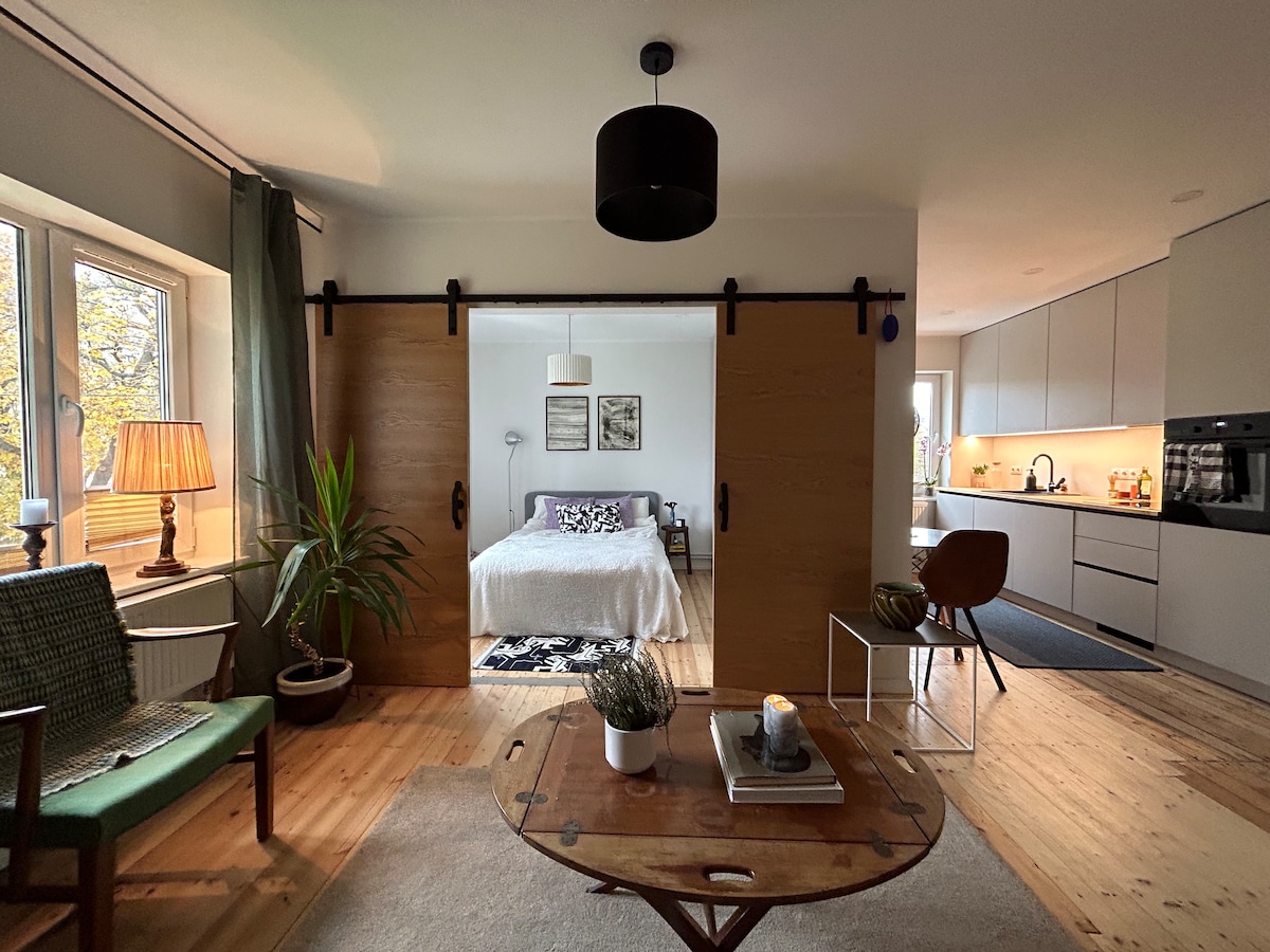 Pis acollidor i pintoresc de dues habitacions amb llar de foc a prop del casc antic, al centre de parcs i una romàntica zona de cases de fusta que es diu Kassisaba. Ben equipat, ideal per a parelles i famílies (1-2 nens). Un parc per a nens de l'altre costat del carrer. Parc per a gossos a 500 metres. A poca distància a peu del casc antic a 1,3 km i dels restaurants més propers a 300 m. La zona de moda de Telliskivi està a només 15 minuts a peu. Hi ha aparcament disponible al pati. Una petita botiga de comestibles just a la porta principal i una altra a una manzana de distància.
