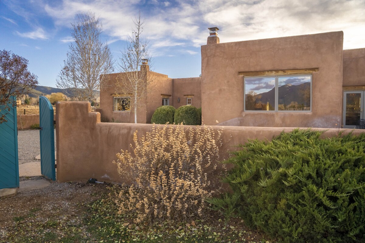 L'artista Rod Goebel va crear aquest santuari tranquil: una residència, una capella, un pati cobert i una casa d'hostes, en un impressionant refugi rural de sis acres de bellesa, totalment tancat. Gaudeix d'un pati cobert, barbacoa, banyera d'hidromassatge i cuina parcial amb tots els elements bàsics. A només 12 minuts de la ciutat, a prop de la carretera de Taos Ski Valley. La nostra propietat, que accepta mascotes, és sagrada i privada, va ser nomenada la millor Airbnb a Taos per al 2025: "Només a Nou Mèxic" en línia. Vine a relaxar-te amb l'art, l'esplendor de la natura i el veritable relaxament, sota els cels estrellats.