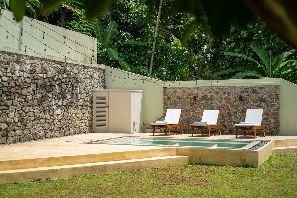 Aquest allotjament elegant és perfecte per a parelles o famílies petites. Allotjar fins a 4 adults, amb l'opció del segon dormitori com a 1 llit «king size» o 2 llits individuals, a més d'un bressol a petició. Disposa d'una piscina privada, un gran jardí emmurallat i còmodes gandules. Un refugi modern al cor del sud, a només 15 minuts del fort de Galle i a 10 minuts de la bulliciosa platja de Unawatuna.