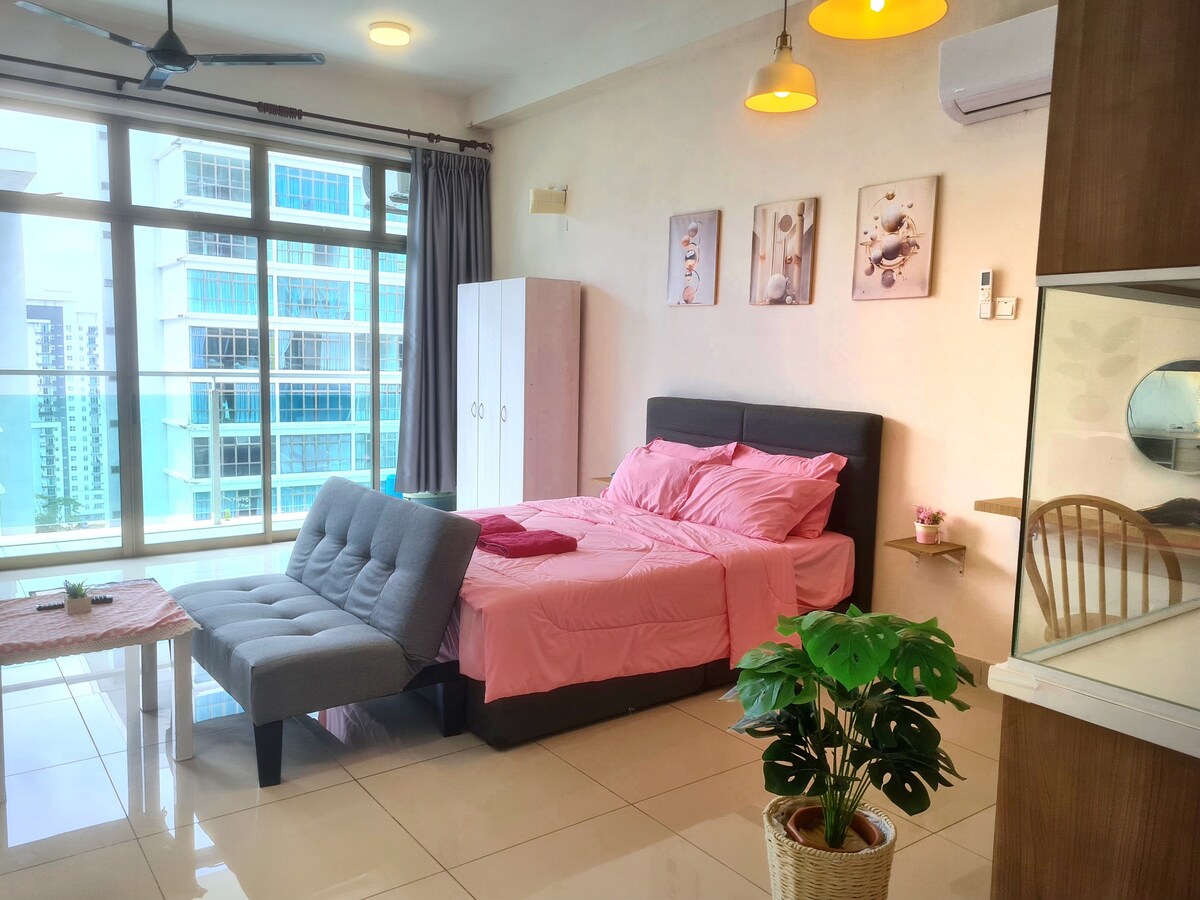 Et donem la benvinguda al nostre acollidor estudi d'estil modern per a 2 persones! ❤️ La nostra ubicació és al cor de la ciutat de Johor Bahru, a només 5 minuts del punt de control de CIQ. 🚗 És molt adequat per a parelles , famílies petites, viatgers de negocis o turistes. 🌹 La nostra unitat amb boniques vistes a la planta alta que té vistes ininterrompudes de la ciutat de JB 🥰 i aquest lloc també envoltat de botigues còmodes, a prop de la vida nocturna, transport públic, zones de menjar agradables, centre de massatges, restaurant , centre comercial, etc. 🌻 Vine a gaudir ^^