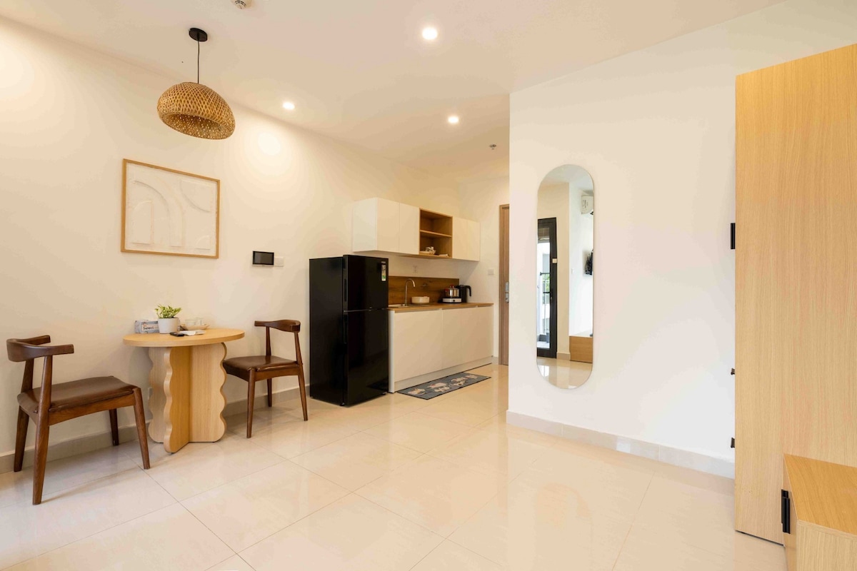 Gaudeix del luxe a la vora del riu a Vinhomes Grand Park. Desperta amb vistes al riu en aquest apartament amb 1 dormitori. Ideal per a viatgers de negocis i parelles que busquen comoditat moderna amb elegància boho.