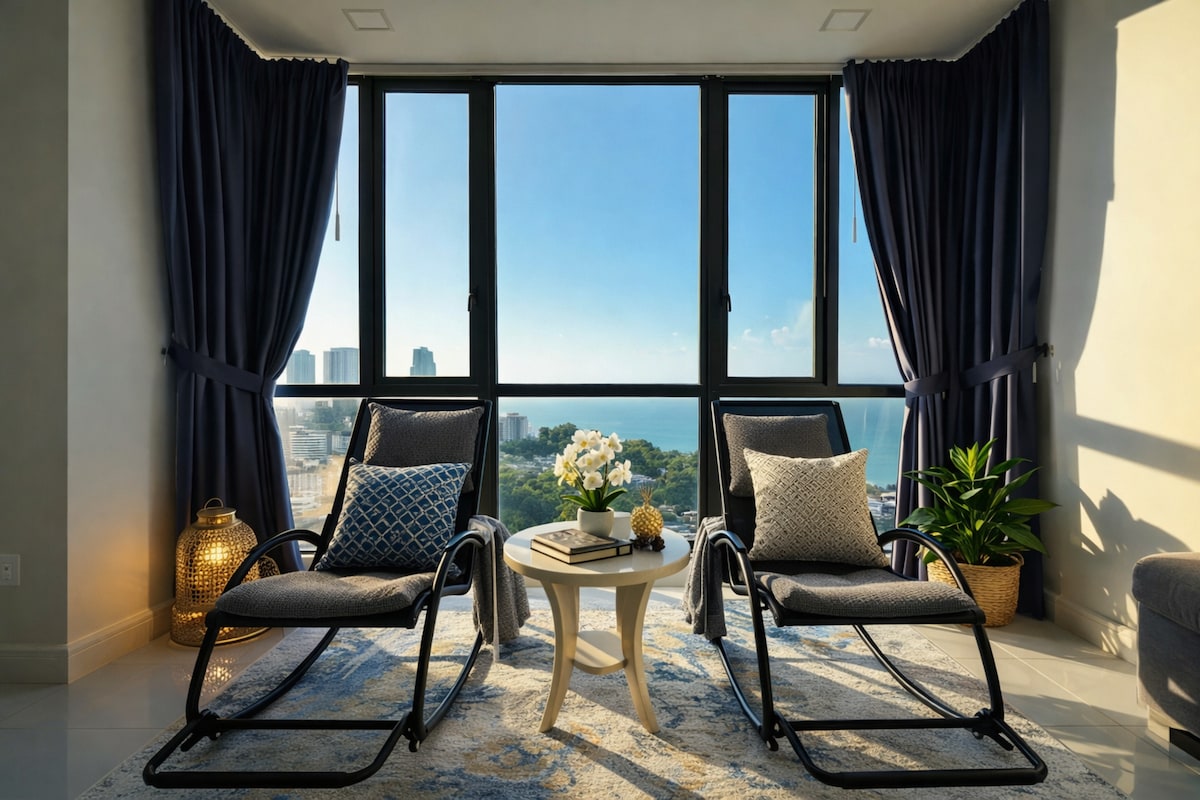 Our most popular and top-rated 2-bedroom Jazz Suite offers a comfortable and reliable seaview stay loved by many returning guests. Situated on a high floor, the unit is breezy, bright, and well-maintained—perfect for both short and extended stays. After a day of exploring Penang, unwind in the bathtub and enjoy complimentary access to the shared sauna and swimming pool. This unit is known for its balance of comfort, location, and value, making it a trusted choice for first-time.