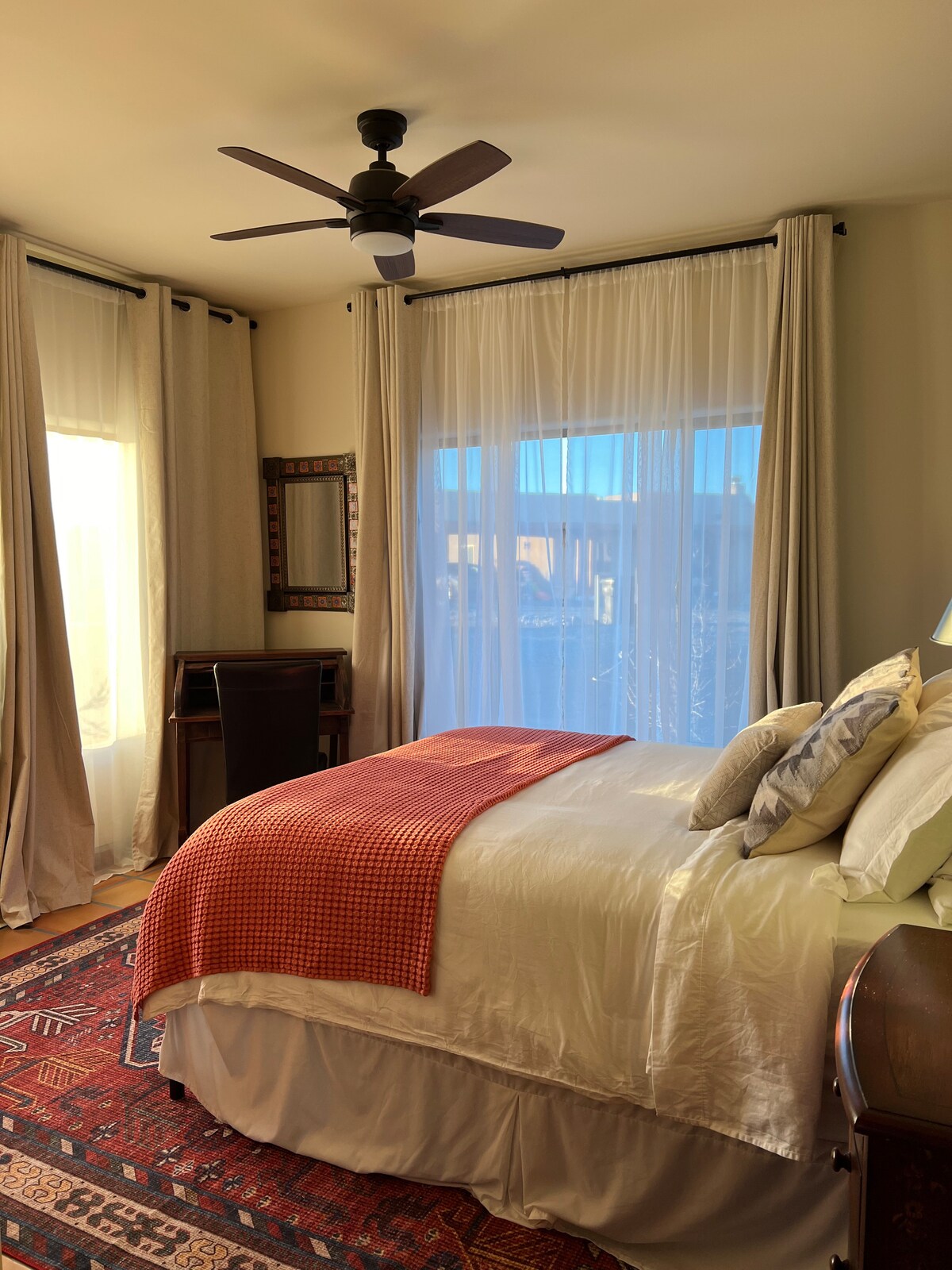 Our modern earth home is a cozy, craftsman-built nest that treats its visitors to light, open space & color. It has a quiet, private setting with everything needed to make your stay comfortable &, hopefully, inspired. The outdoors is this home's other half, creating an enveloping amphitheater of gardens, birds, trees & a hammock. Beyond this private nest are 360 degree views of the Sangre de Christo Mountains, the Rio Grande Gorge, spectacular sunset displays & miles of walking & bike trails.