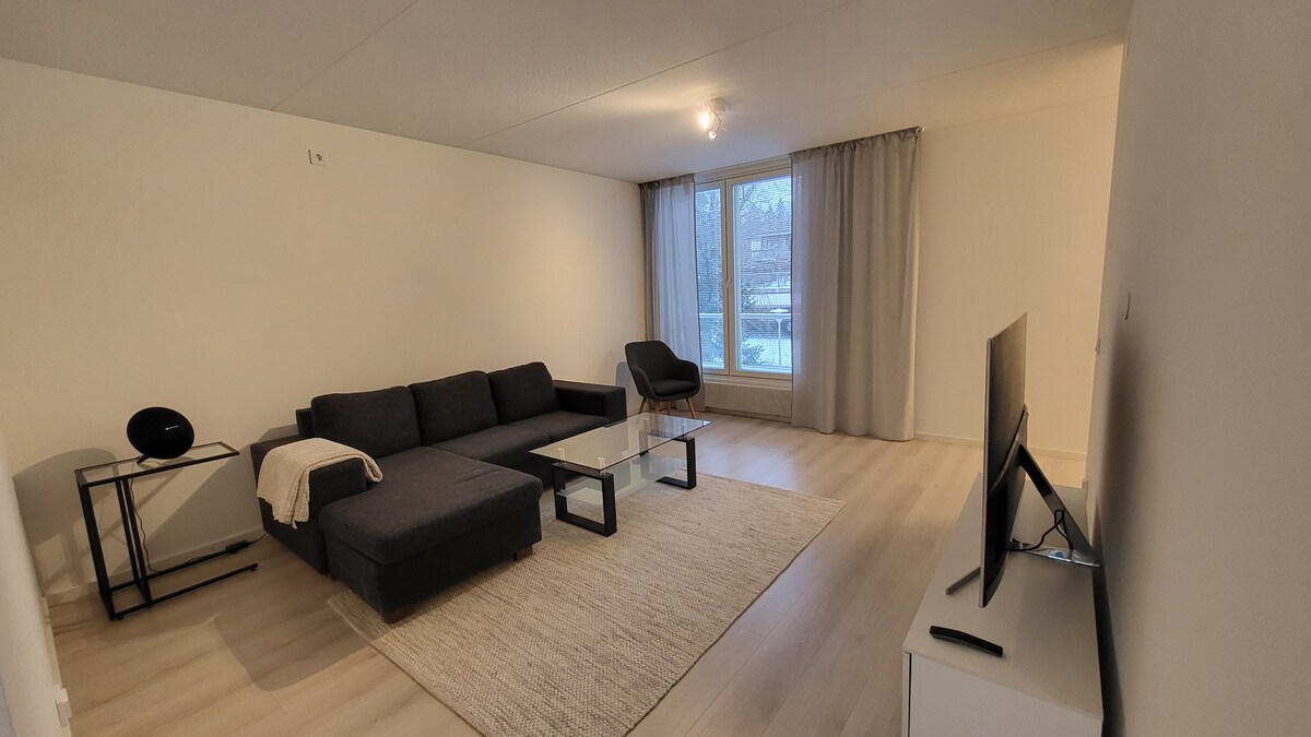 Pis modern de 43,5 m² amb aire condicionat en un edifici torre al costat de l'estació de metro de Matinkylä i del centre comercial Iso Omena (centre comercial de l'any 2018 NCSC). Vistes increïbles des del 16è pis (planta 14) des del gran balcó totalment envidriat amb zona de seients. El centre de Hèlsinki està a només 20 minuts en metro. Un dormitori amb llit continental «king size» (180 cm d'amplada) i el sofà modular de la sala d'estar consta de 3 llits separats de 80x200 cm amb un mecanisme d'obertura fàcil.