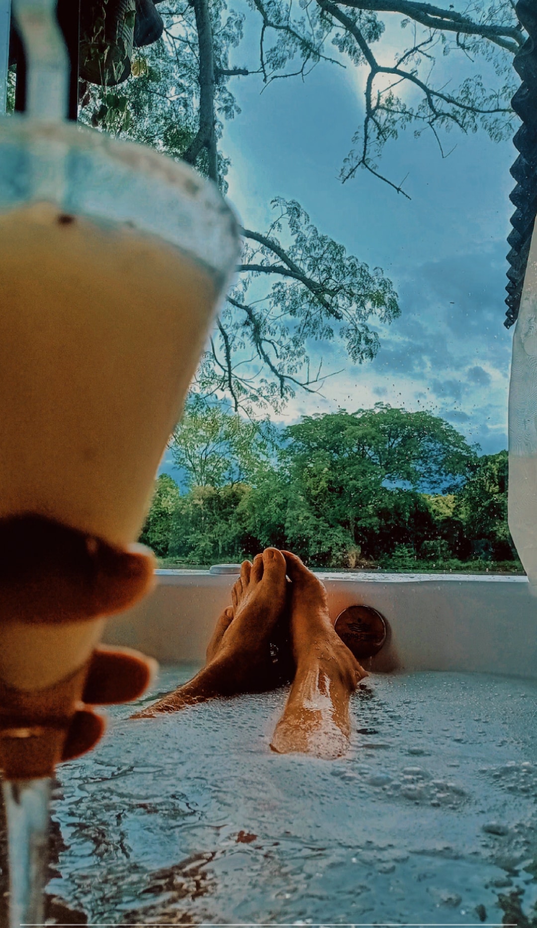 Cabana amb banyera d'hidromassatge i vistes a la posta de sol