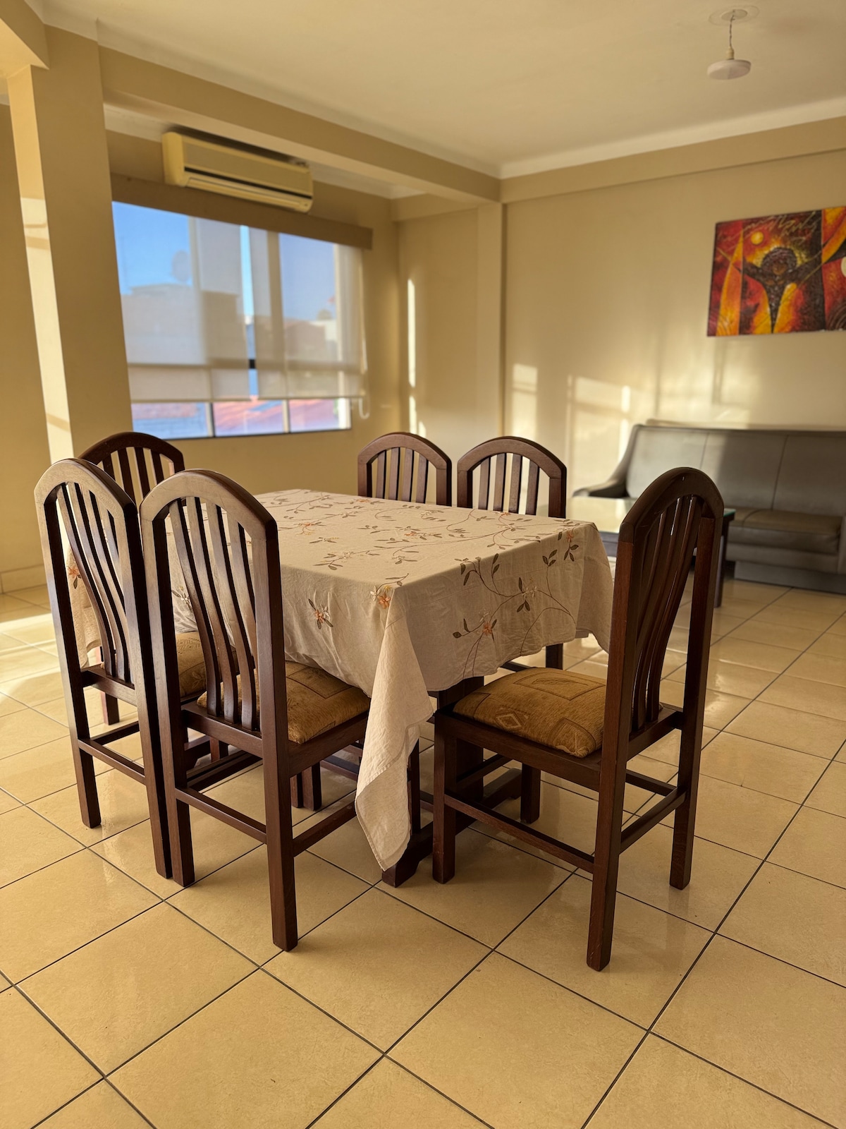 Preciós depto al centre de Tarija Té 1 dormitori (llit queen) i un sofà llit de 2 places a la sala d'estar. Situat a 1 illa de la plaça principal i a prop de tot: Plazuela Sucre, mercat central, restaurants, farmàcies i transport. En un apartament nou i modern, amb accés sense restriccions mitjançant un pany intel·ligent. 📢 Si ets de Bolívia, pots fer servir les targetes virtuals per fer la reserva. No tenim el tipus de canvi oficial.
