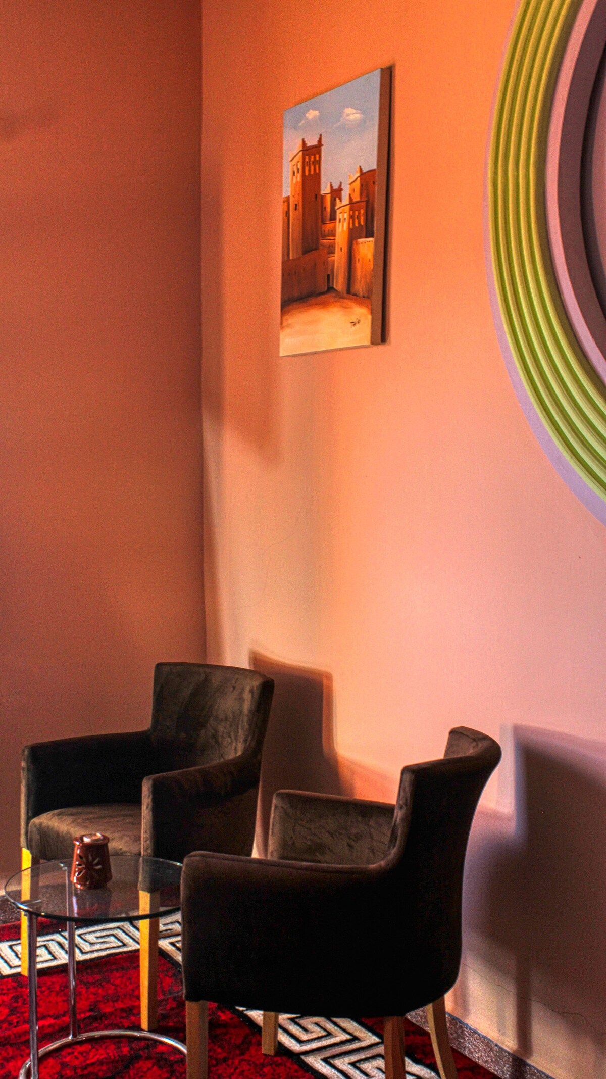 Situat al cor de l'encantadora ciutat d'Ouarzazate, al Marroc, Dar Fadma és un oasi serè de tranquil·litat. Aquesta exquisida casa de convidats, situada al pintoresc poble de Tajda Tarmigt, ofereix una barreja única d'hospitalitat marroquina, arquitectura tradicional i comoditat moderna. Envoltat de paisatges impressionants i immers en la cultura local, Dar Fadma és més que un lloc on allotjar-se; és una experiència que captura l'essència de la bellesa i l'encant del Marroc.