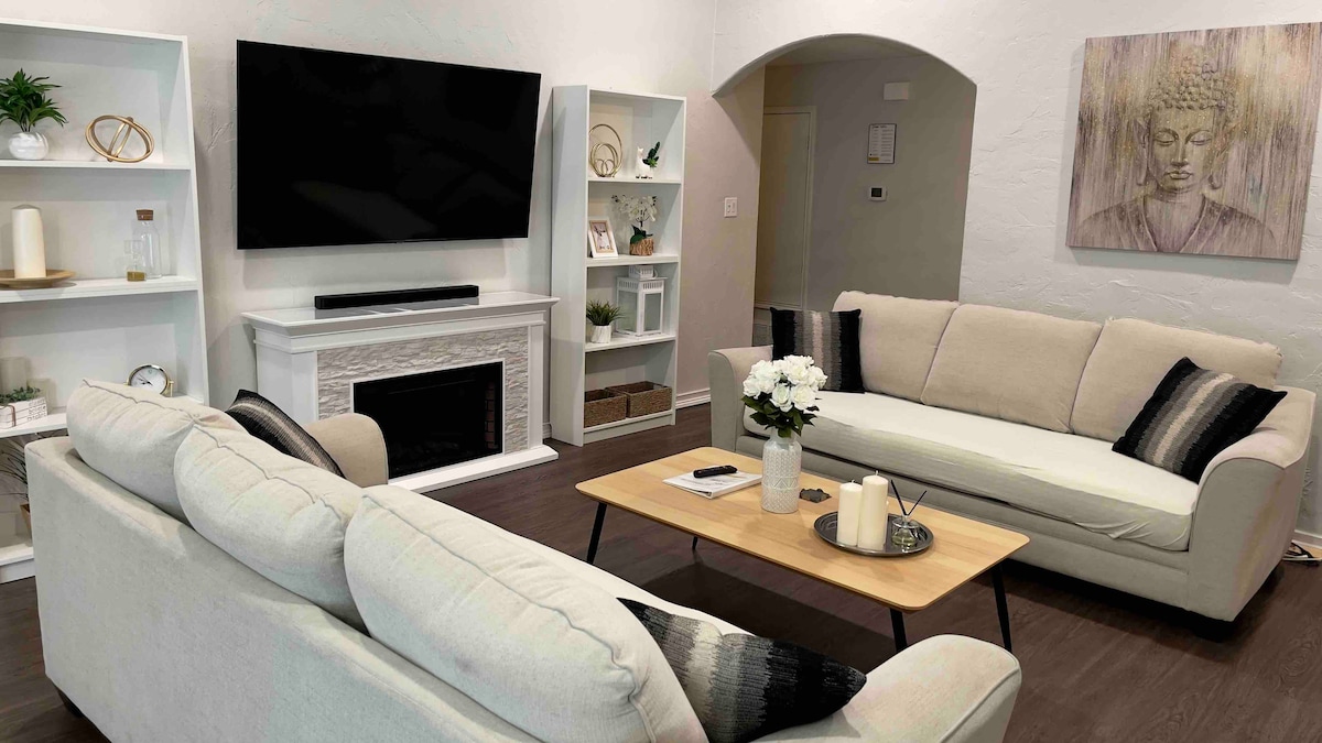 Què faràs ❤️ de la teva estada? - Situat al centre d'Arlington. - A pocs minuts de AT&T Stadium, Texas LIVE, Globe Life Field, Six Flags, Hurricane Harbor, University of Texas at Arlington, Billy Bob's of TX, Famous Stockyards of Fort Worth i DFW Airport - A 19 minuts a peu de l'estadi AT&T. - A poca distància a peu de botigues, restaurants i bars. - Zona per fer foc/graella/menjador a l'aire lliure - Cuina totalment equipada (càpsules/cafè incloses) - Internet d'alta velocitat - (3) Televisors intel·ligents - Rentadora i assecadora de mida completa
