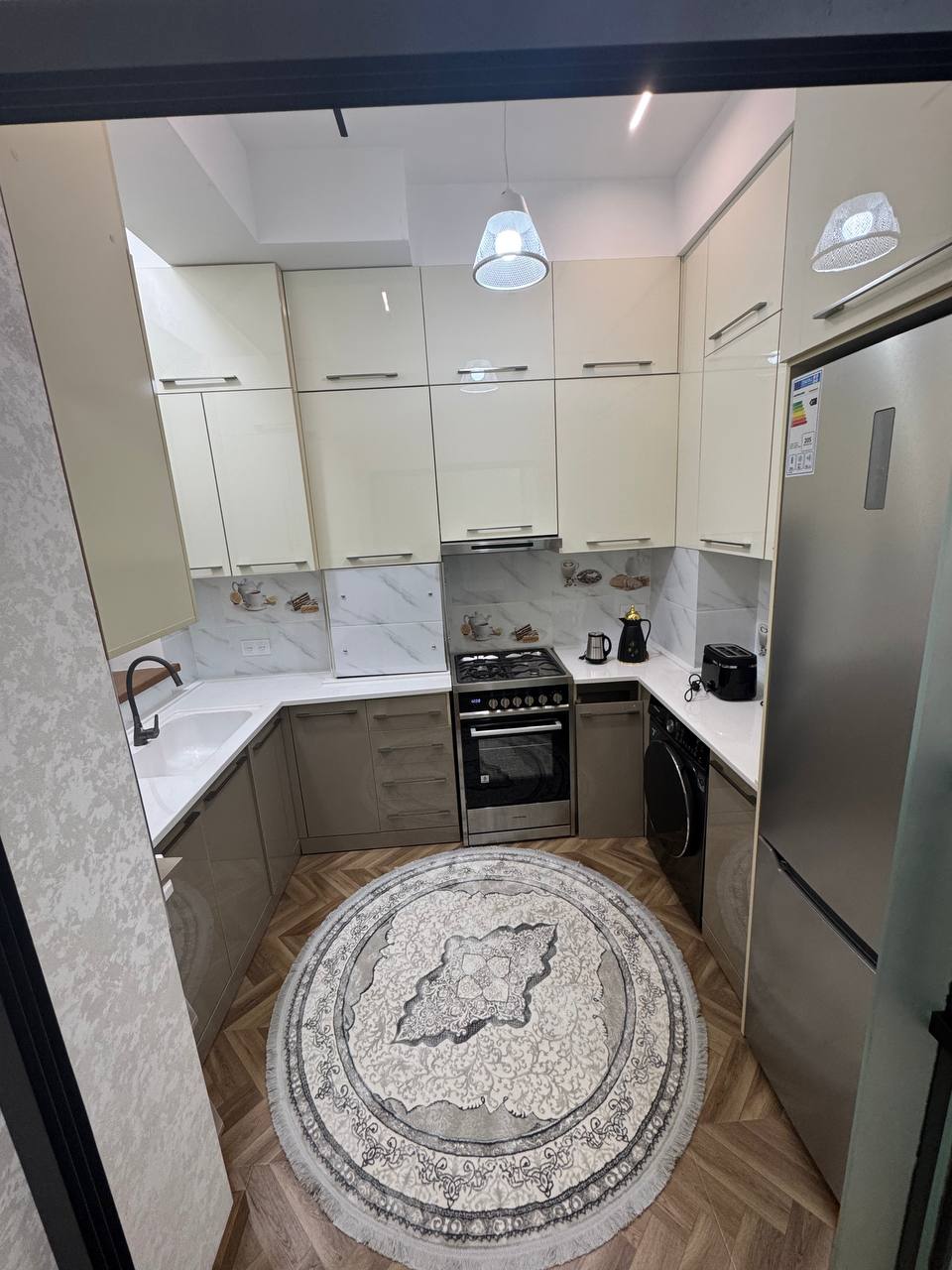 • Dormitori espaiós amb un llit gran i suau i una il·luminació elegant • Cuina moderna combinada amb una zona Instal·lacions del pis: • Aire condicionat • Wifi i televisor intel·ligent • Cuina totalment equipada (electrodomèstics integrats, plats) • Nevera gran, fogons, forn • Rentadora • Zona de menjador i taula de treball Roba de llit i tovalloles netes • Planxa i taula de planxar • Bany modern amb banyera