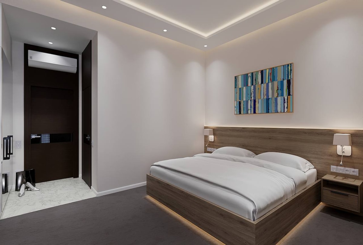 Habitació Confort: 2 llits individuals (twin) o 1 llit de matrimoni (DBL) a petició Homy House Hotel es troba al centre de Tashkent. Construït el 2023 i va obrir les seves portes als hostes el 2024. Aquí sentiràs la més acollidora i la comoditat. Disseny Lexury, wifi ràpid, televisor intel·ligent i, sobretot, llit net i tou. El nostre espai és tranquil i tranquil. Al costat de l'edifici del supermercat Makro està obert les 24 hores. A prop hi ha la casa de sushi Cafe Suro i altres restaurants. Estarem encantats d'allotjar-te.