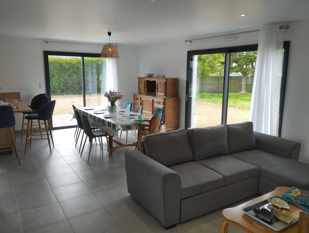 Nova casa còmoda i familiar "Les Lilas" amb una ubicació ideal al cor del poble de Taulé amb el seu jardí. Fleca, servei de catering, farmàcia, estadi de la ciutat, parc de bombes...Tot a poca distància a peu. Les platges de Carantec en 8 minuts. Ideal per a les vacances en família, la nostra casa amb dos dormitoris i un sofà llit ofereix tota la comoditat necessària per a una estada inoblidable.