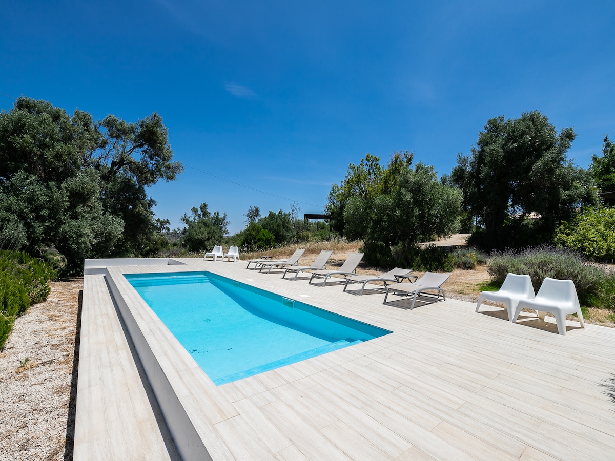 Our "Villa Sunset" has one of the most beautiful views in the whole Algarve with breathtaking sea views over the whole coast from Tavira to Albufeira, which turns into a sea of lights in the evening. On the 14.000sqm plot there is a 10x5m heated swimming pool, a panoramic terrace with jacuzzi for 6 persons, a gas barbecue as well as comfortable loungers and seating and idyllic shady spots. A dream holiday with a view for guests seeking privacy.