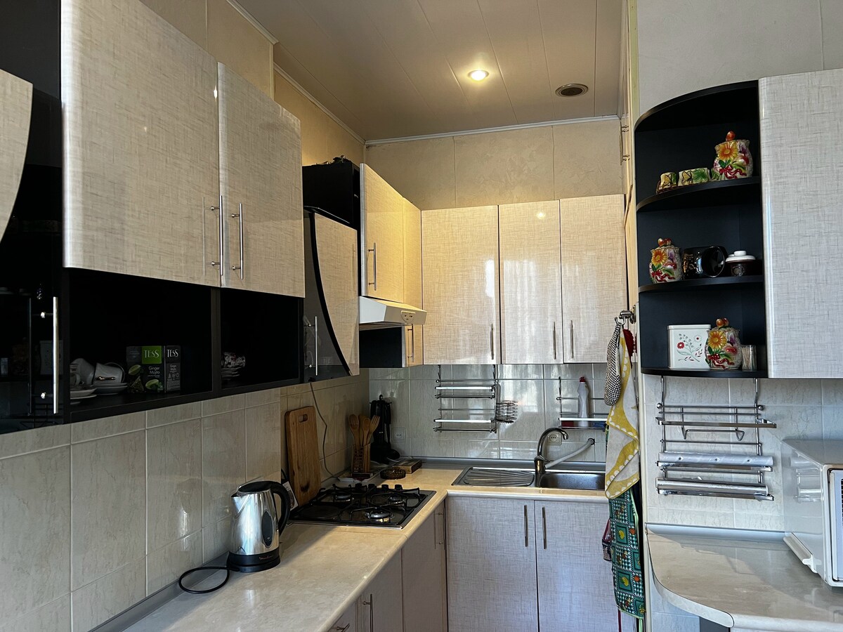 Gaudeix de la teva estada en una acollidora casa construïda amb pedra i fusta, amb una vista única de les muntanyes i els verds vessants de Dilijan. A l'interior hi ha un ambient càlid i un confort modern: una sala d'estar espaiosa amb una llar de foc elèctrica, una cuina equipada, wifi i tot el que necessites per a la teva comoditat. Al territori hi ha un mirador i una zona de barbacoa, ideal per a sopars a l'aire lliure i vetllades amb la família o els amics. Un lloc tranquil, aire net i vistes a les muntanyes creen una sensació de privacitat i harmonia. .