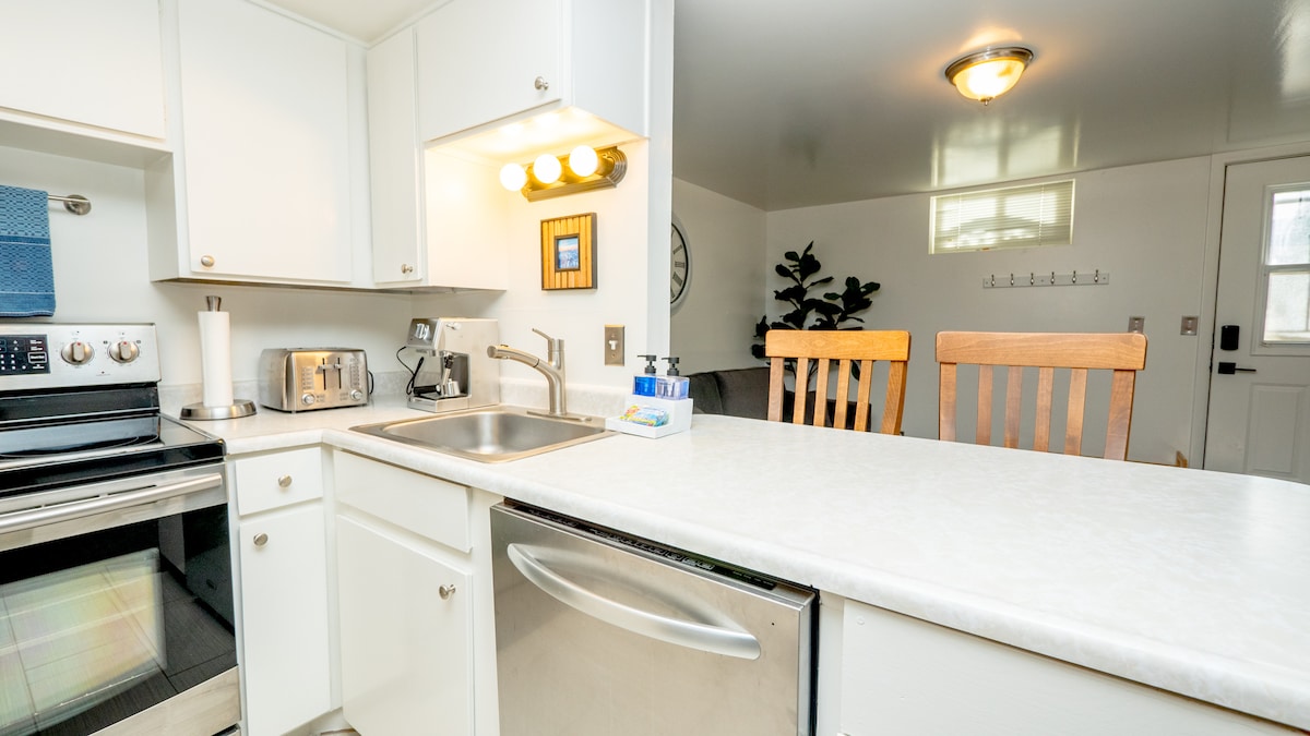 Relaxa't a la nostra suite per a convidats totalment privada! Ofereix una experiència hotelera còmoda a un preu molt més baix. Oferim aparcament a l'entrada, una entrada privada al teu espai, un acollidor llit California King, dutxa de luxe amb pluja, armari, cuina americana, internet de fibra i televisor intel·ligent. Hi ha disponible un llit juvenil i un parc infantil addicionals. Som uns amfitrions fantàstics i fem tot el possible per oferir una estada còmoda, neta, assequible i segura per als nostres hostes.