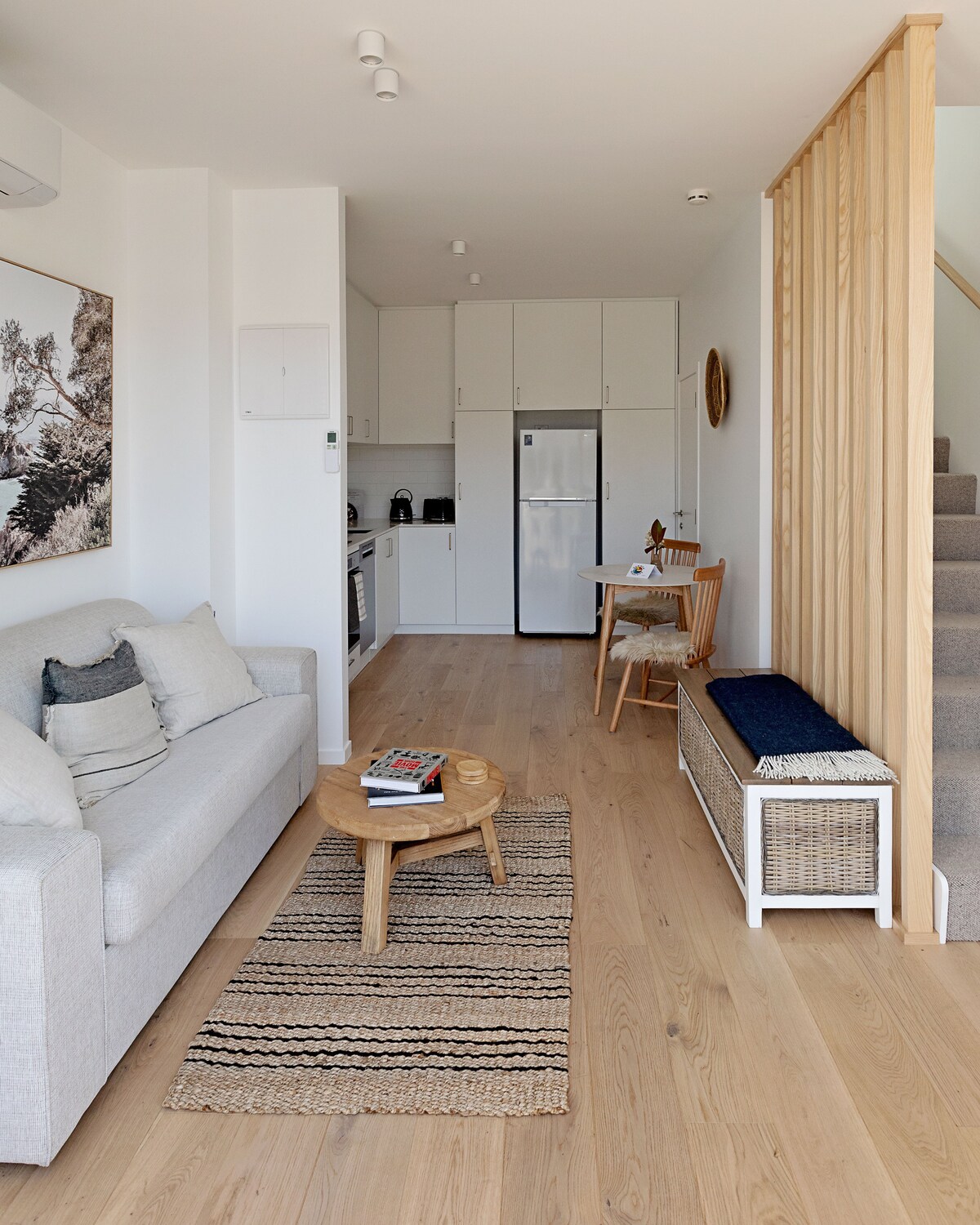 Enjoy a sunny and stylish experience at this centrally located townhouse in Matakana Village. Bright and sunsplashed with a spacious kitchen, indoor and outdoor living room, and a gorgeous bedroom upstairs with an AC / heat pump, the villa is across from 8 Wired Brewery and steps from the Farmer's Market, cinemas, and other Matakana shops and eateries.