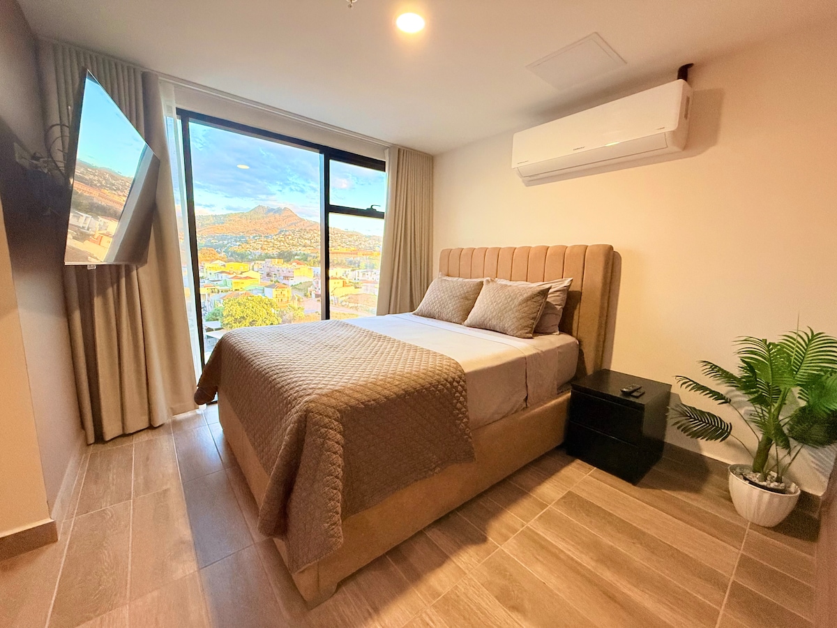 A punt per gaudir de la posta de sol i les llums de la ciutat? Gaudeix d'aquest àtic acollidor amb una de les millors vistes de Tegucigalpa! Inclou 1 dormitori, sofà llit, cuina completa i 2 places d'aparcament. Una escapada relaxant en un barri ideal per a parelles, amics o viatges de negocis!