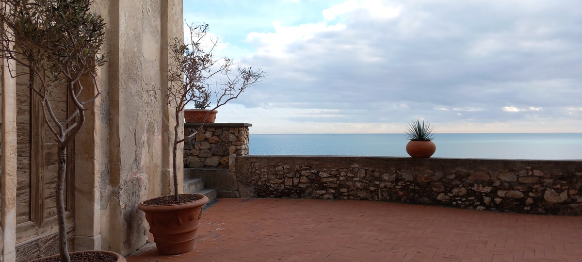 Casa típica i exclusiva de 4 plantes amb teulada de terra, amb vistes directes al penya-segat de Tellaro, un dels pobles amb més encant d'Itàlia. Des de la terrassa podràs viure moments inoblidables: esmorzars amb l'aroma del mar i sopars a la llum de les espelmes amb una vista espectacular de Portovenere i les illes de Tino i Palmaria. Aquí trobaràs tot el que necessites per a una estada única, un autèntic niu d'amor on l'únic fons serà el so de les ones.