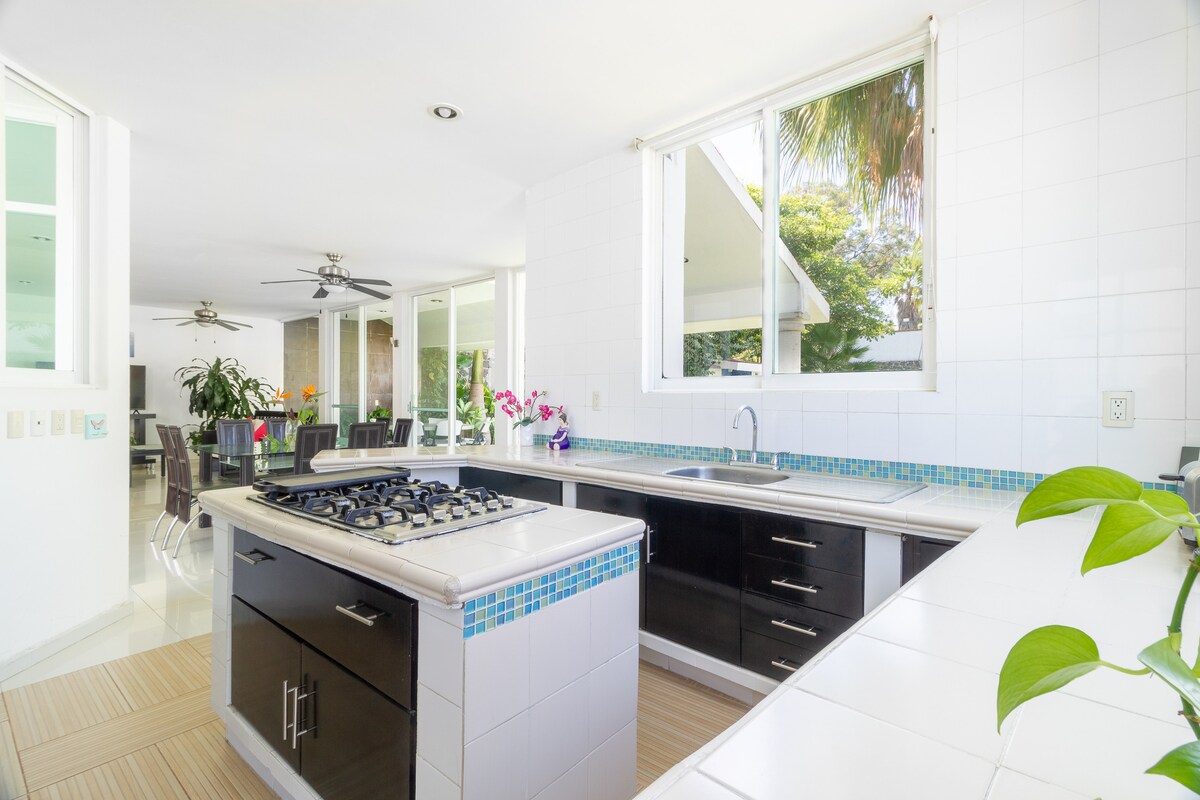 Preciosa casa al sud de Cuernavaca amb un jardí encantador i ampli, piscina privada i piscina infantil amb escalfament solar. La temperatura oscil·la entre 18 °C i 25 °C a l’hivern i entre 28 °C i 34 °C a l’estiu. Hi ha una porta de seguretat per a nens i animals de companyia. Palapa amb televisor intel·ligent de 55 polzades, barbacoa, forn i espais amplis perquè puguis gaudir amb la família i/o els amics. Aparcament privat per a 5 cotxes. Banys amb il·luminació natural i un bany principal amb banyera d'hidromassatge privada. Vine a relaxar-te i gaudeix del temps i de la natura