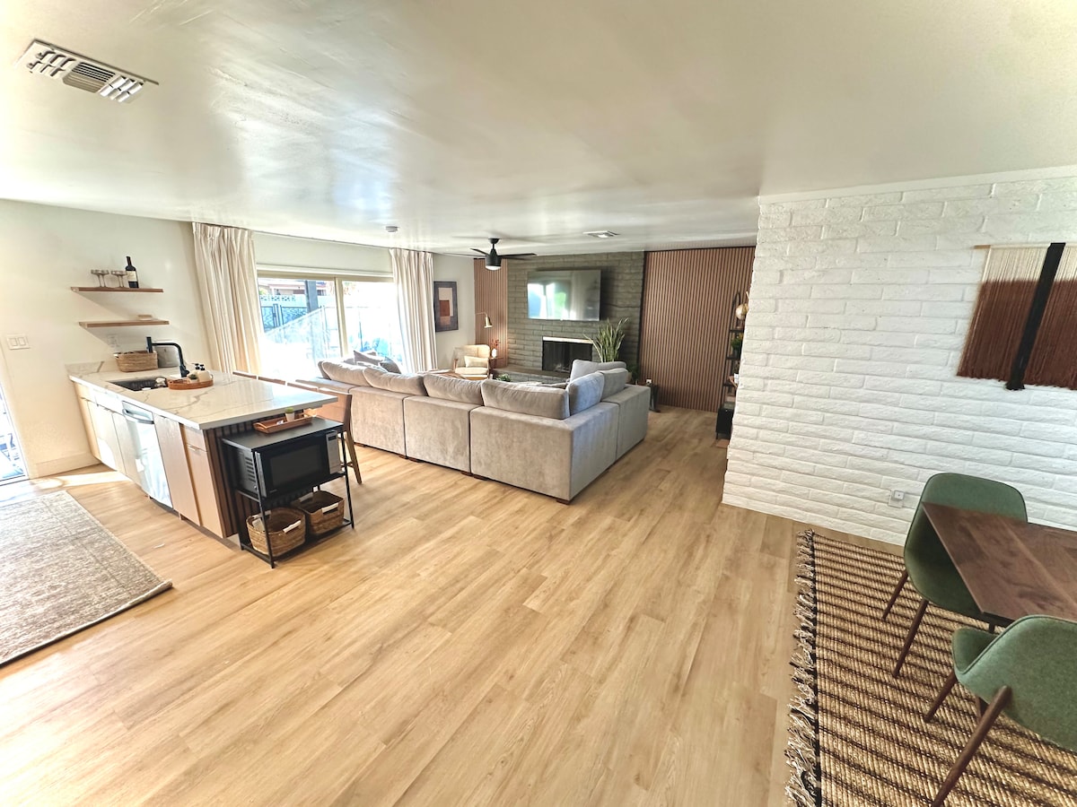 Reserva la teva escapada a casa situada al cor de Tempe! T'agradarà nedar a la teva pròpia piscina privada climatitzada (tarifa de calefacció opcional de 75 $ per dia/ 90 graus). Diverteix-te jugant una ronda de ping pong o billar. Taula de graella i llar de foc (propà inclòs). Bar de cafè/te completa que inclou una cafetera Nespresso i Keurig, molta varietat de cafè, tes, cremes i sabors. Allotjament espaiós amb 2 sales d'estar i televisors intel·ligents a cada habitació per agradar tots els hostes. A prop d'ASU, en un barri tranquil.
