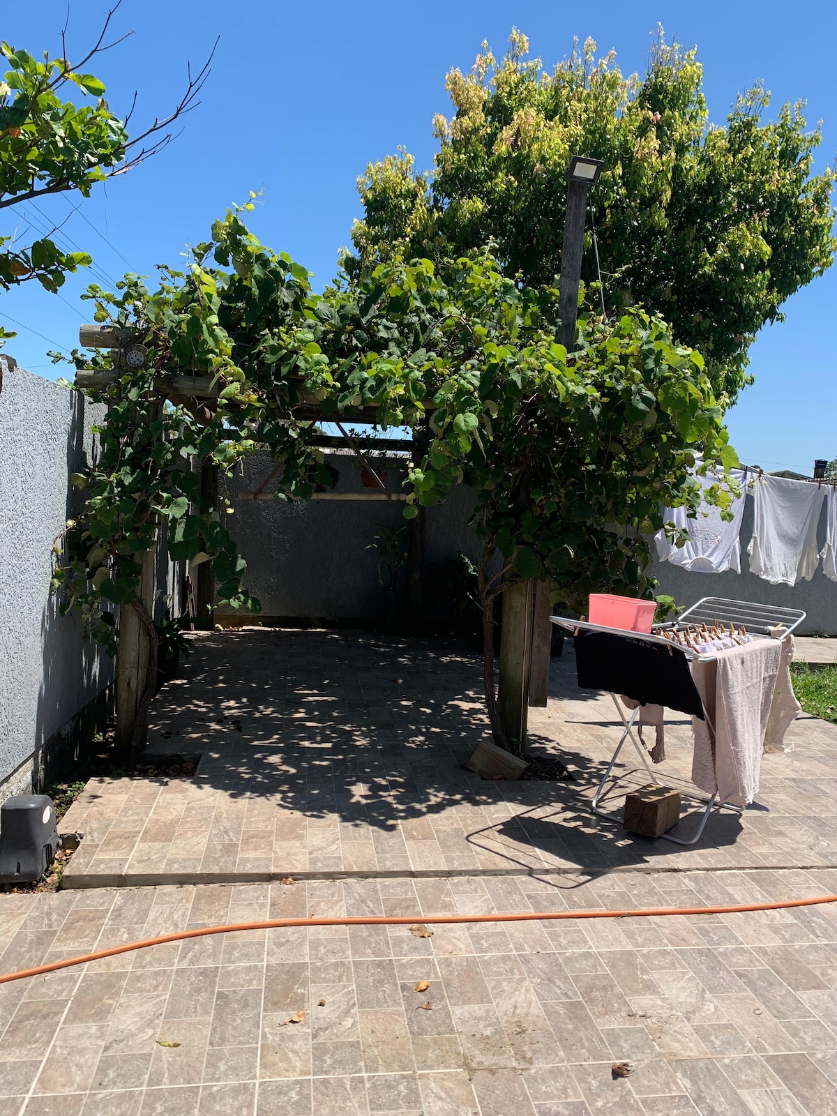 Relaxe com toda a família nesta acomodação tranquila. Pátio todo cercado, lugar tranquilo, ótimo para descansar.