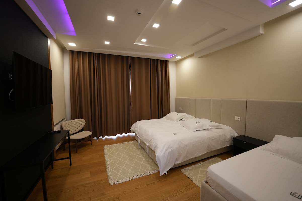 Estem encantats d'allotjar-te al nostre espaiós allotjament amb aire condicionat. L'apartament pot allotjar fins a 3 persones. Botigues i cafè als peus de la residència. Viu una experiència autèntica a Tunísia per compartir amb parelles, amics i familiars. Reserva ara si vols estar en un allotjament espaiós i tranquil a 20 minuts de Tunísia. Aparcament gratuït davant de la residència, passi de taxi freqüent. Estació de tren a 10 minuts de la medina.
